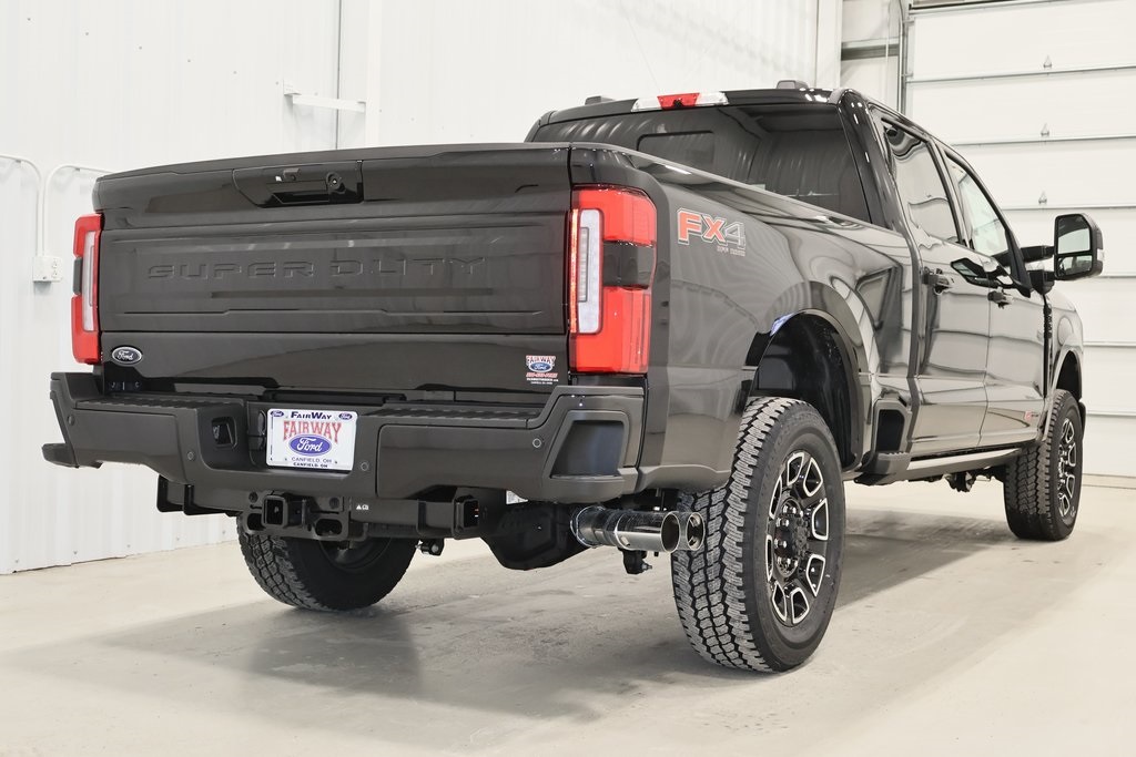 Fairway Ford Sells, Ships, And Collects Taxes In All 50 States. 2025 Ford F-350SD Platinum 4D Crew Cab 4WD 6.7L Hi Output Power Stroke 160″WB. SYNC 4 Connected Navigation. Twin Panel Power Moonroof. Heated & Cooled Multi-Contour 40/Console/40 Power Front Leather Seats with Driver Memory. Heated Back Seats. Heated Steering Wheel. Power Running Boards. 20″ Bright Machined and Ebony Black Low-Gloss Painted Aluminum Wheels. Rear Wheel Well Liner. Power Tailgate. Pro Power Onboard – 2kW. Tailgate Step. Onboard Scale & Smart Hitch. Tailgate Applique. Power-Sliding Rear-Window. PowerScope Heated Trailer Tow Door Mirrors with LED Side-Mirror Spotlights, Turn Signals, LED Security Approach Lamps & Memory. Power Tilt & Telescope Steering Column. Power Adjustable Pedals with Memory. GVWR: 12,000 lb Payload Package. FX4 Off-Road Package. Skid Plates. Off-Road Specifically Tuned Shock Absorbers. Hill Descent Control. Hill Start Assist. Snow Plow Prep Package. Pro Trailer Backup Assist. Pro Trailer Hitch Assist. 4X4 Shift On The Fly with Locking Rear Axle. Electronic-Locking with 3.55 Axle Ratio. Upfitter Switches (6). Trailer Brake Controller. Trailer Reverse Guidance. Traction Control. Electronic Stability Control. Tow Hooks. Rapid-Heat Supplemental Cab Heater. Engine Block Heater. TorqShift Ten-Speed Automatic Transmission with Selectable Drive Modes: Normal, Eco, Slippery Roads, Tow/Haul.
