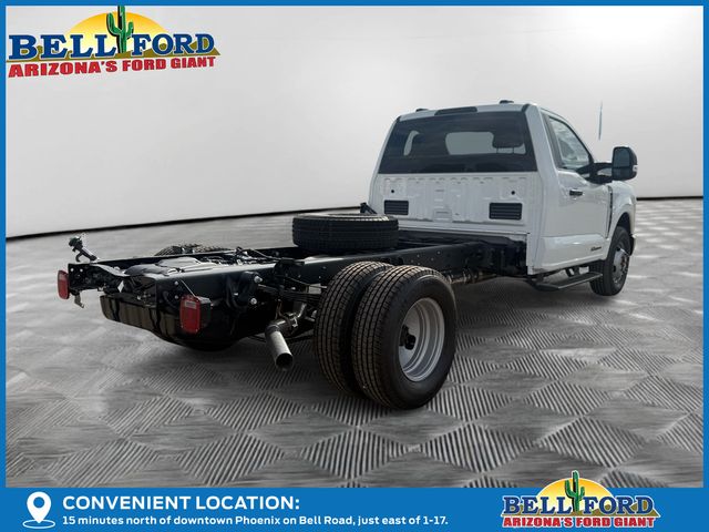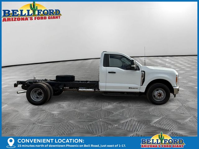 Oxford White 2025 Ford F-350SD XL DRW RWD Power Stroke 6.7L V8 DI 32V OHV Turbodiesel 10-Speed Automatic. GVWR: 14,000 lb Payload Package, Order Code 640A, XL Chrome Package (Bright Grille, Chrome Front Bumper, Halogen Fog Lamps, and Remote Start), 120V/400W Outlet, 17″ Argent Painted Steel Wheels, 190 Amp Alternator, 3.73 Axle Ratio, 4 Speakers, 4-Ton Hydraulic Jack, 4-Wheel Disc Brakes, 410 Amp Dual Alternators, ABS brakes, Air Conditioning, AM/FM radio, AM/FM Stereo w/MP3 Player, Brake assist, Compass, Delay-off headlights, Dual 68 AH/65 AGM Battery, Dual front impact airbags, Dual front side impact airbags, Dual rear wheels, Emergency communication system: SYNC 4 911 Assist, Front anti-roll bar, Front Center Armrest w/Storage, Front reading lights, Front wheel independent suspension, Fully automatic headlights, HD Vinyl 40/20/40 Split Bench Seat, Heated door mirrors, Illuminated entry, Low tire pressure warning, Outside temperature display, Overhead airbag, Overhead console, Panic alarm, Passenger cancellable airbag, Passenger vanity mirror, Platform Running Boards, Power door mirrors, Power steering, Power windows, Rear anti-roll bar, Rear View Camera & Prep Kit, Remote keyless entry, Security system, Speed control, Steering wheel mounted audio controls, SYNC 4 Communication & Entertainment System, Tachometer, Telescoping steering wheel, Tilt steering wheel, Traction control, Trip computer, Turn signal indicator mirrors, and Variably intermittent wipers.