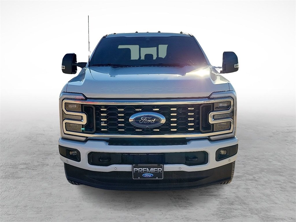 Our diesel-driven One Owner 2025 Ford F-350 Platinum Crew Cab 4X4 Dually combines raw power and refined luxury in Star White Metallic Tri-coat! Motivated by a TurboCharged 6.7 Liter High Output PowerStroke Diesel V8 delivering 500hp and 1200lb-ft of torque to a 10 Speed Automatic transmission. That lets our Four Wheel Drive truck tow, haul, and take on your world without sweating. A mighty grille helps you make a bold impression with Ford F-350 details like LED lighting, fog lamps, power running boards, a power tailgate, a Pro Power Onboard generator, and striking alloy wheels. Ford's Top-shelf Platinum cabin amenities include heated/ventilated leather power front and heated rear seats, a heated leather power steering wheel, dual-zone automatic climate control, power-adjustable pedals, a power sliding rear window, and advanced technologies for digital convenience. A 12-inch touchscreen, a 12-inch driver display, connected navigation compatibility, wireless charging, voice recognition, a B&O Unleashed sound system, and sophisticated phone connectivity lead the way. Ford doesn't make you sacrifice safety for strength, supplying front/rear automatic braking, a head-up display, trailer-compatible blind-spot monitoring, lane-keeping assistance, a 360-degree camera system, trailer reverse guidance, trailer-sway control, and other intelligent features. With all that, our F-350 Platinum earns the Super Duty seal of approval! Save this Page and Call for Availability. We Know You Will Enjoy Your Test Drive Towards Ownership!