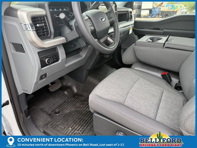 Oxford White 2025 Ford F-550SD XL DRW RWD Power Stroke 6.7L V8 DI 32V OHV Turbodiesel 10-Speed Automatic. GVWR: 18,000 lbs Payload Package, GVWR: 19,550 lb Payload Plus Upgrade Package 2, High Capacity Trailer Tow Package, Order Code 660A, XL Chrome Package, 190 Amp Alternator, 4 Speakers, 4-Wheel Disc Brakes, 4.88 Axle Ratio, 6-Ton Hydraulic Jack, ABS brakes, Air Conditioning, AM/FM radio, AM/FM Stereo w/MP3 Player, Brake assist, Compass, Delay-off headlights, Dual 68 AH/65 AGM Battery, Dual front impact airbags, Dual front side impact airbags, Dual rear wheels, Emergency communication system: SYNC 4 911 Assist, Front anti-roll bar, Front Center Armrest w/Storage, Front reading lights, Fully automatic headlights, HD Vinyl 40/20/40 Split Bench Seat, Heated door mirrors, Illuminated entry, Limited Slip w/4.30 Axle Ratio, Outside temperature display, Overhead airbag, Overhead console, Panic alarm, Passenger cancellable airbag, Passenger vanity mirror, Platform Running Boards, Power door mirrors, Power steering, Power windows, Rear anti-roll bar, Rear View Camera & Prep Kit, Remote keyless entry, Security system, Speed control, Steering wheel mounted audio controls, SYNC 4 Communication & Entertainment System, Tachometer, Telescoping steering wheel, Tilt steering wheel, Traction control, Trailer Brake Controller, Trip computer, Turn signal indicator mirrors, Variably intermittent wipers, and Wheels: 19.5″ x 6″ Argent Painted Steel.
