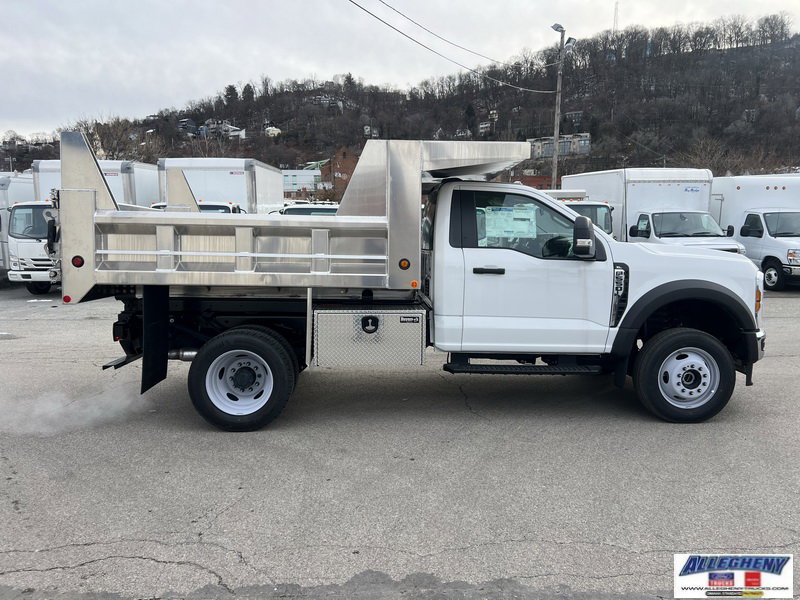 2025 Ford F550 Super Duty XL 4x4 Dump Body: 9' Godwin Aluminum Dump Body, Aluminum Gate, Underbody Toolbox, Cab Shield, Full Front & Rear Gussets, Dirt Shedding Sides Inside & Outside, Tye Rail, Hitch Plate, D-Hooks, Trailer Plug. 7.3L Gas V8, 10-Speed Automatic, 4.88 Limited Slip Axle. Snow Plow Prep Package, Transfer Case Skid Plates, Trailer Brake Controller, 410 AMP Dual Alternators, Dual Batteries. A/C, Cruise, Tilt, AM/FM/MP3/Aux Input/Bluetooth, WiFi Hotspot, Power Windows/Locks/Mirrors, Keyless Entry, Remote Start System, Chrome Front Bumper & Grille, Platform Running Boards, Rear View Camera.