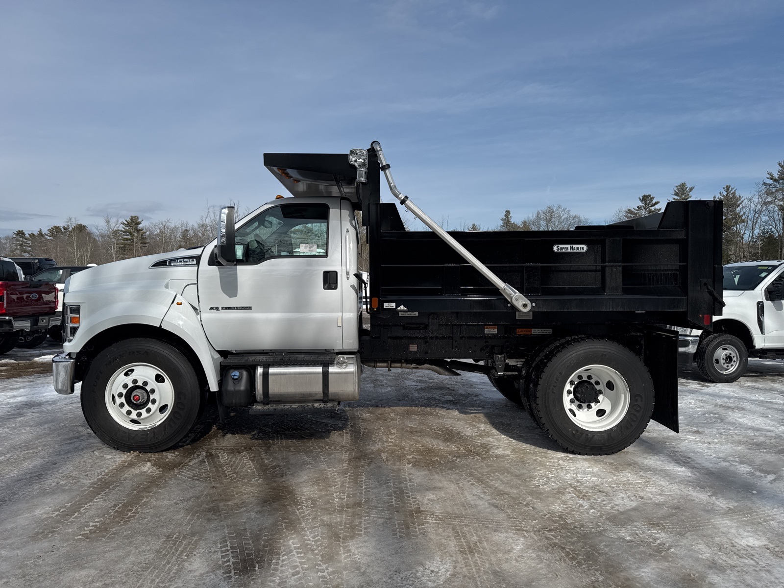 Dumpbody. 2025 Ford F-650SD RWD 10-Speed Automatic V8 White.