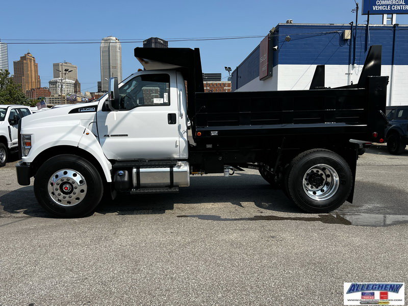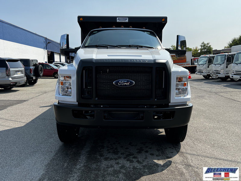2025 Ford F750 Dump Body: 10' Steel Dump Body with Cab Shield, Full Front & Rear Gussets, Steel 2-Way Gate, Tye-Rail, Inner & Outer Dirt Shedding Sides, Hitch Plate, D-Rings, Trailer Plug. Air Brakes with Traction Control, Air Dryer, Air Ride Driver Seat, Auxiliary Switches, Dual Batteries, 50 Gallon Aluminum Fuel Tank, Front Stabilizer Bar, Trailer Connections - Combined Air Socket, 12K# Front Axle/23K# Rear Axle, Rear Spring Suspension with Rear Shocks. 6.7L Powerstroke Diesel - 330 HP, 10-Speed Automatic, 6.14 Axle, Locking Diff. A/C, Tilt, AM/FM, Power Windows/Locks, Keyless Entry, 110V AC Outlet, XL2020 Power/Heated Chrome Cap 96 Mirrors, Air Horn, Aluminum Wheels, Rear View Camera with Mirror Display.