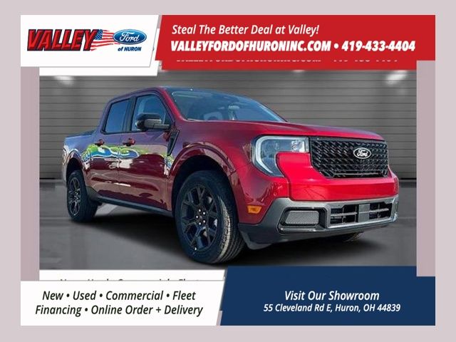 $1,000 off MSRP! Recent Arrival! 2025 Ruby Red Metallic Tinted Clearcoat Ford Maverick Lariat AWD EcoBoost 2.0L I4 GTDi DOHC Turbocharged VCT This Ford Maverick has many features and is well equipped, Great Price, Brake Assist, Backup Camera, Premium Audio, Satellite Radio, Bluetooth Hands-Free, Steering Wheel Controls, Premium / Alloy Wheels. 22/30 City/Highway MPG Thank you for taking the time to look at this outstanding 2025 Ford Maverick. With our pressure-free environment, drivers from Vermillion, Norwalk, Sandusky, Milan, and beyond are encouraged to take advantage of our services that benefit them best. We know car-ownership can be a large undertaking, so we are here to offer advice and help with all things Ford. Explore what our Huron OH dealership has to offer and contact us with any questions that you have. We look forward to hearing from you! Thank you for taking the time to look at this beautiful 2025 Ford Maverick. Here at Valley Ford of Huron we use live market pricing. Our price is pulled live today using Cox vAuto Market Scan. Whether you are looking for a Great Deal, a Great Price, or a Great Value, Valley Ford of Huron has you covered. Also get a complimentary CarFax available today. Join us for the best experience you will ever have. If we do not have what you are looking for, just let us know and we will find it. We have access to any make/model and offer Certified Pre-Owned vehicles too. We can also locate vehicles with just about any option to include Sunroof, Moonroof, Navigation System, Heated Steering Wheel, HomeLink, LED Headlights, DVD Player, Rear Seat Entertainment, Backup Camera, Brake Assist, Automatic Emergency Braking, Blind Spot Monitoring, Cross Traffic Alert, Rear Cross Traffic Alert, Lane Departure Warning, Night Vision, Head-up Display, Automatic Parking, Cruise Control, Adaptive Cruise Control, Rain Sensing Wipers, Remote Engine Start, Memory Seat, Leather Seats, Heated Seats, Cooled Seats, Third (3rd) Row Seats, Steering Wheel Controls, Multi-zone Climate Control, Keyless Entry, Allow Wheels, Premium Wheels, Apple CarPlay, Android Auto, WiFi Hotspot, Premium Audio Sound System, Bluetooth Audio, Hands-Free Audio, Portable Audio Connection, USB Port, Satellite Radio, Trailer Tow, Tow Hitch, 4WD, AWD, FWD, Disability Equipped, Keyless Start, Security System, Roof Rack, Dual Rear Wheels, Stability Control, and much more!