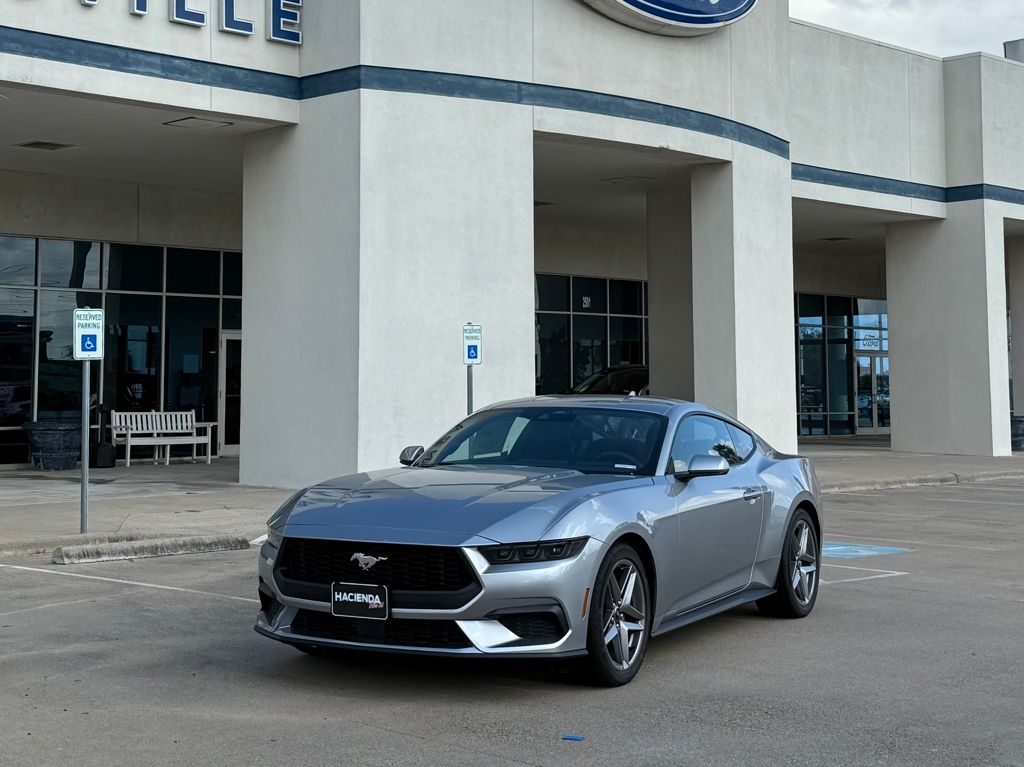 Iconic Silver Metallic 2025 Ford Mustang EcoBoost® RWD 10-Speed Automatic EcoBoost® 2.3L I4 GTDi DOHC Turbocharged VCT. Price includes $2500 Retail Customer Cash. Exp. 03/31/2026.