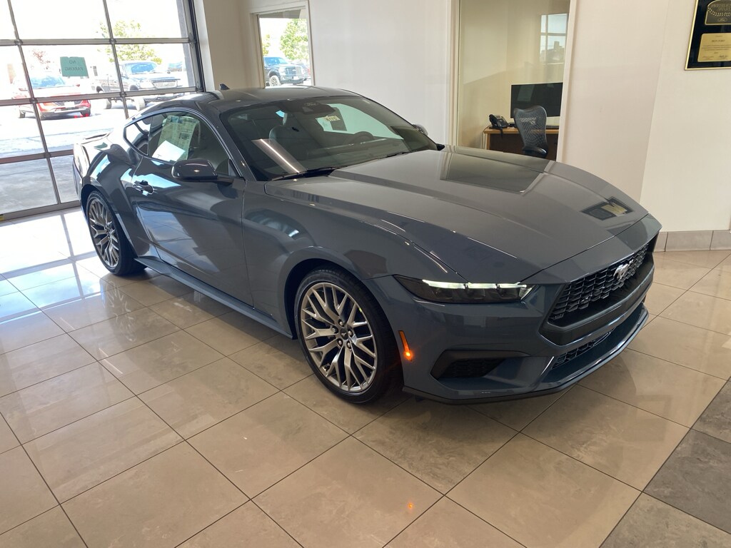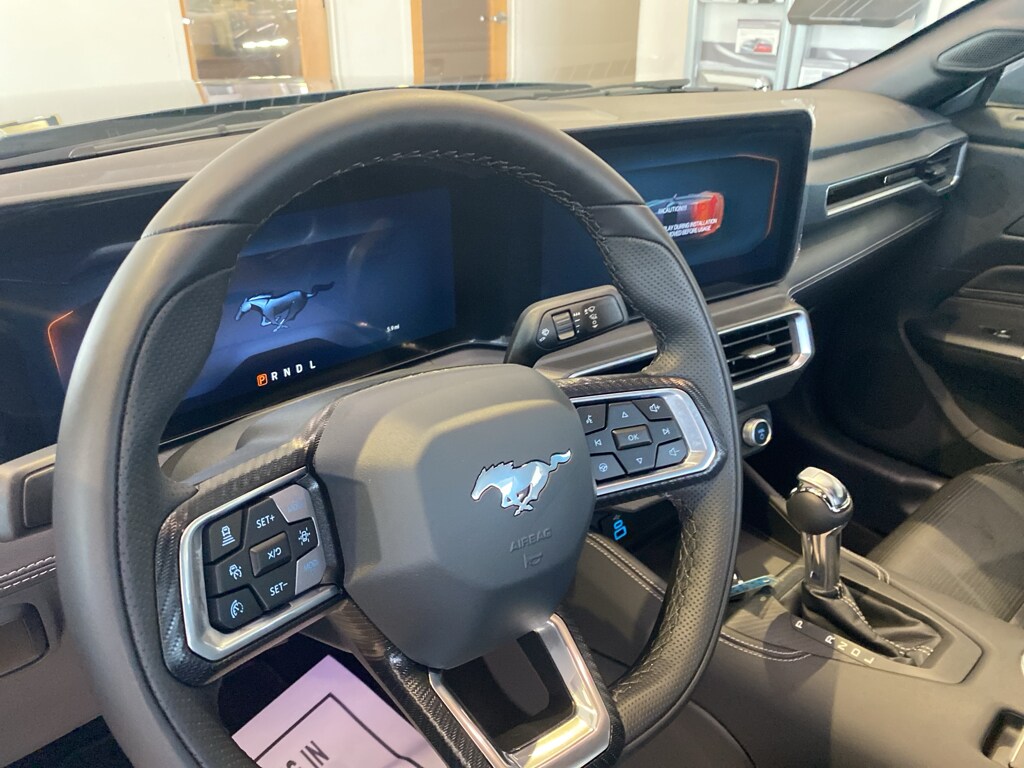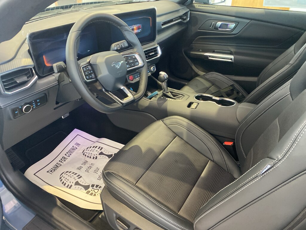 The rear parking assist technology on this Ford Mustang will put you at ease when reversing. The system alerts you as you get closer to an obstruction. This unit offers Apple CarPlay for seamless connectivity. The leather seats in this model are a must for buyers looking for comfort, durability, and style. It features a hands-free Bluetooth phone system. This Ford Mustang keeps you comfortable with Auto Climate. Keep your hands warm all winter with a heated steering wheel in this small car. Protect this model from unwanted accidents with a cutting edge backup camera system. This Ford Mustang comes equipped with Android Auto for seamless smartphone integration on the road. This 2025 Ford Mustang's Cross-Traffic Alert: Safeguarding you from unexpected traffic when reversing. Start this unit from inside with remote start. This model has a 4 Cyl, 2.3L high output engine. Impresses the most discerning driver with the deep polished blue exterior on this model.