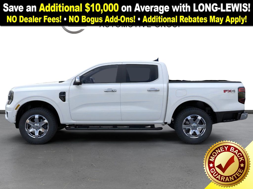 $5,259 off MSRP! Oxford White 2025 Ford Ranger Lariat FCT 4WD 10-Speed Automatic EcoBoost 2.3L I4 GTDi DOHC Turbocharged VCT 4WD, 10 Speakers, 4-Wheel Disc Brakes, ABS brakes, Air Conditioning, Alloy wheels, AM/FM radio: SiriusXM, Auto High-beam Headlights, Auto-dimming Rear-View mirror, Automatic temperature control, Black Running Boards, Body Color Painted Front Fascia, Brake assist, Chrome Accent Package, Chrome Center Bar & Grille Surround, Chrome Rear Bumper, Class IV Trailer Hitch Receiver, Compass, Delay-off headlights, Driver door bin, Driver vanity mirror, Dual front impact airbags, Dual front side impact airbags, Electronic Stability Control, Emergency communication system: SYNC 4 911 Assist, Front anti-roll bar, Front Bucket Seats, Front Center Armrest, Front dual zone A/C, Front fog lights, Front License Plate Bracket, Front reading lights, Front wheel independent suspension, Fully automatic headlights, FX4 Off-Road Box Decal, FX4 Off-Road Package, FX4 Selectable Drive Modes, Garage door transmitter, Gray Painted Center Bar & Grille Surround, Gray Painted Front Fascia & Rear Bumper, Heated door mirrors, Heated front seats, Heated steering wheel, Illuminated entry, Integrated Box Side Step, Internet access capable: FordPass Connect 4G, Leather Shift Knob, Leather steering wheel, Leather-Trimmed Front Heated Bucket Seats, Low tire pressure warning, Memory seat, Navigation system: Connected Navigation, Occupant sensing airbag, Off-Road Screen in Center Stack, Off-Road Tuned Shocks, Outside temperature display, Overhead airbag, Overhead console, Painted Body-Color Wheel Lip Molding, Panic alarm, Passenger door bin, Passenger vanity mirror, Power door mirrors, Power driver seat, Power passenger seat, Power steering, Power windows, Radio: B&O Sound System by Bang & Olufsen, Rain sensing wipers, Rear reading lights, Rear seat center armrest, Rear step bumper, Rear window defroster, Remote keyless entry, Security system, SiriusXM Satellite Radio, Speed control, Speed-sensing steering, Sport Appearance Package, Sport Box Decal, Steering wheel mounted audio controls, SYNC 4A w/Connected Navigation, Telescoping steering wheel, Tilt steering wheel, Traction control, Trail Control, Trailer Tow Package.