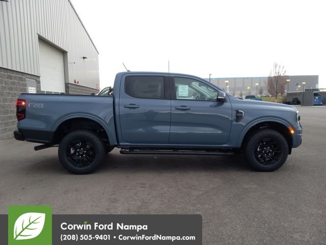 Our 2025 Ford Ranger Lariat SuperCrew 4X4 with the FX4 Off-Road Package combines modern muscle and smart technology in Azure Gray Metallic Tri-coat! Powered by a TurboCharged 2.3 Liter EcoBoost 4 Cylinder generating 270hp for a 10 Speed SelectShift Automatic transmission to help make tough challenges feel easy. This Four Wheel Drive truck can inspire confidence with the FX4 Off-Road Pack's electronic locking rear differential, trail control, off-road tuned shocks, composed handling, and achieve nearly 25mpg on the highway. Our Ranger is ready to rock with its LED lighting, fog lamps, zone/cargo-bed lighting, a steel rear bumper, a power-locking tailgate, a 120V/400W outlet, alloy wheels, and heated power mirrors. You can command the road in comfort from our Lariat cabin. It boasts heated leather power front seats, a leather-wrapped steering wheel, dual-zone automatic climate control, a powered rear window, 12V/120V outlets, and Intelligent Access with pushbutton ignition. And remote. Enjoy real-world tech benefits with the 12-inch driver display, 12-inch touchscreen, connected navigation, WiFi compatibility, Apple CarPlay, Android Auto, Bluetooth, wireless charging, and B&O audio. Ford sets the stage for safer trucking with adaptive cruise control, enhanced auto parking assist, a digital rearview mirror, blind-spot monitoring, lane-keeping assistance, automatic braking, forward collision warning, a 360-degree camera, and more. You can drive our Ranger Lariat when you demand the best! Save this Page and Call for Availability. We Know You Will Enjoy Your Test Drive Towards Ownership! Corwin Ford Nampa! Friendly service and aggressive pricing is why we are your new and pre-owned vehicle dealer serving, Nampa, Boise, Meridian, Caldwell, Kuna, Eagle, Emmett, Idaho City, Wilder, New Plymouth, Star, Middleton, Weiser, Payette, Horseshoe Bend, Mountain Home, Idaho, and surrounding states.