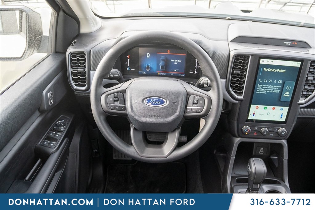 Don Hattan Ford is delighted to offer this robust, reliable 2025 Ford Ranger XL in Oxford White, beautifully equipped with Ford Co-Pilot360 (Auto High-Beam Headlamps, BLIS Blind Spot Information System, Lane-Keeping System, and Reverse Park Aid), STX Appearance Package (Halogen Fog Lamps, LED Reflector Headlamps, and STX Fender Badge), Trailer Tow Package (Class IV Trailer Hitch Receiver), 4WD, 3.73 Axle Ratio, 4-Wheel Disc Brakes, 6 Speakers, ABS brakes, Air Conditioning, Alloy wheels, AM/FM radio, AM/FM Stereo, Auto High-beam Headlights, Brake assist, Bumpers: body-color, Cloth Front Bucket Seats, Compass, Delay-off headlights, Driver door bin, Dual front impact airbags, Dual front side impact airbags, Electronic Stability Control, Emergency communication system: SYNC 4 911 Assist, Front anti-roll bar, Front wheel independent suspension, Fully automatic headlights, Illuminated entry, Low tire pressure warning, Occupant sensing airbag, Outside temperature display, Overhead airbag, Overhead console, Panic alarm, Passenger door bin, Power door mirrors, Power steering, Power windows, Rear reading lights, Rear seat center armrest, Rear step bumper, Remote keyless entry, Security system, Speed control, Speed-sensing steering, Steering wheel mounted audio controls, SYNC 4A, Telescoping steering wheel, Tilt steering wheel, Traction control, Trip computer, Variably intermittent wipers, Voltmeter, and Wheels: 17" Silver-Painted Aluminum! Bluetooth Apple Car. 4WD Auto High-Beam Headlamps BLIS Blind Spot Information System Class IV Trailer Hitch Receiver Ford Co-Pilot360 Halogen Fog Lamps Lane-Keeping System LED Reflector Headlamps Reverse Park Aid STX Appearance Package STX Fender Badge Trailer Tow Package.