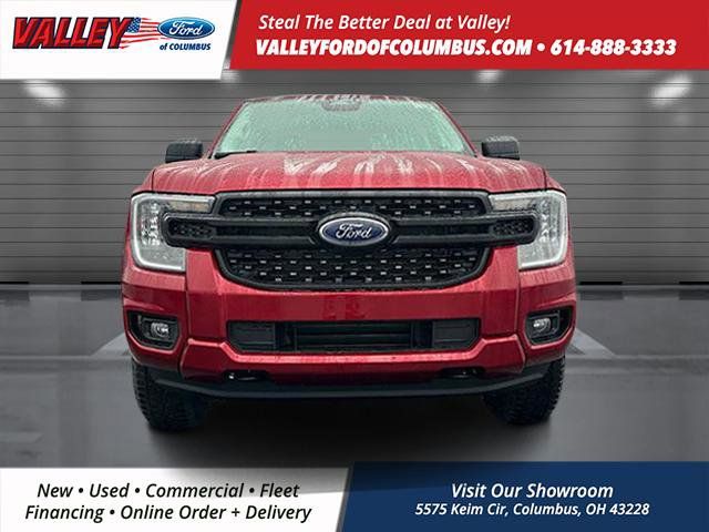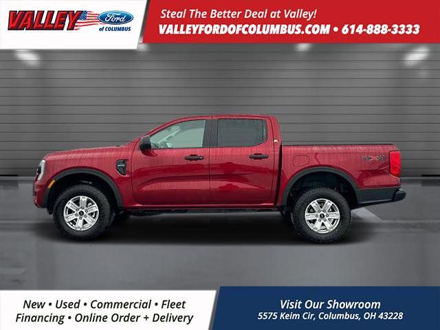 This Ford Ranger has many features and is well equipped, Apple CarPlay and/or Android Auto, Brake Assist, Premium Audio, Satellite Radio, Steering Wheel Controls, Cruise Control, Premium / Alloy Wheels, Class IV Trailer Hitch Receiver, Equipment Group 100A Standard, Halogen Fog Lamps, LED Reflector Headlamps, STX Appearance Package, STX Fender Badge, Trailer Tow Package. 2025 Ford Ranger Ruby Red Metallic Tinted Clearcoat XL 4WD EcoBoost 2.3L I4 GTDi DOHC Turbocharged VCT 10-Speed Automatic Our mission is to provide the ultimate shopping experience to every customer. Visit our dealership near Grove City, OH, today and see why we're the premier destination for new and used vehicles, parts, and services. Thank you for taking the time to look at this handsome 2025 Ford Ranger. Here at Valley Ford of Columbus we use live market pricing. Our price is pulled live today using Cox vAuto Market Scan. Whether you are looking for a Great Deal, a Great Price, or a Great Value, Valley Ford of Columbus has you covered. Also get a complimentary CarFax available today. Join us for the best experience you will ever have. If we do not have what you are looking for, just let us know and we will find it. We have access to any make/model and offer Certified Pre-Owned vehicles too. We can also locate vehicles with just about any option to include Sunroof, Moonroof, Navigation System, Heated Steering Wheel, HomeLink, LED Headlights, DVD Player, Rear Seat Entertainment, Backup Camera, Brake Assist, Automatic Emergency Braking, Blind Spot Monitoring, Cross Traffic Alert, Rear Cross Traffic Alert, Lane Departure Warning, Night Vision, Head-up Display, Automatic Parking, Cruise Control, Adaptive Cruise Control, Rain Sensing Wipers, Remote Engine Start, Memory Seat, Leather Seats, Heated Seats, Cooled Seats, Third (3rd) Row Seats, Steering Wheel Controls, Multi-zone Climate Control, Keyless Entry, Allow Wheels, Premium Wheels, Apple CarPlay, Android Auto, WiFi Hotspot, Premium Audio Sound System, Bluetooth Audio, Hands-Free Audio, Portable Audio Connection, USB Port, Satellite Radio, Trailer Tow, Tow Hitch.