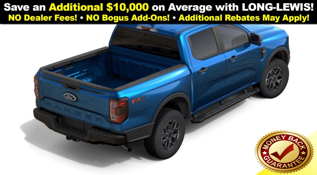 Velocity Blue Metallic 2025 Ford Ranger XLT NFT 4WD 10-Speed Automatic EcoBoost 2.3L I4 GTDi DOHC Turbocharged VCT 4WD, 4-Wheel Disc Brakes, 6 Speakers, ABS brakes, Air Conditioning, Alloy wheels, AM/FM radio: SiriusXM, AM/FM Stereo, Auto High-beam Headlights, Auto-dimming Rear-View mirror, Black Running Boards, Brake assist, Class IV Trailer Hitch Receiver, Cloth Front Bucket Seats, Compass, Delay-off headlights, Driver door bin, Driver vanity mirror, Dual front impact airbags, Dual front side impact airbags, Electronic Stability Control, Emergency communication system: SYNC 4 911 Assist, Front anti-roll bar, Front Bucket Seats, Front Center Armrest, Front fog lights, Front License Plate Bracket, Front reading lights, Front wheel independent suspension, Fully automatic headlights, FX4 Off-Road Box Decal, FX4 Off-Road Package, FX4 Selectable Drive Modes, Gray Painted Center Bar & Grille Surround, Gray Painted Front Fascia & Rear Bumper, Illuminated entry, Internet access capable: FordPass Connect 4G, Leather Shift Knob, Low tire pressure warning, Navigation system: Connected Navigation, Occupant sensing airbag, Off-Road Screen in Center Stack, Off-Road Tuned Shocks, Outside temperature display, Overhead airbag, Overhead console, Panic alarm, Passenger door bin, Passenger vanity mirror, Power door mirrors, Power steering, Power windows, Rear reading lights, Rear seat center armrest, Rear step bumper, Rear window defroster, Remote keyless entry, Security system, SiriusXM Satellite Radio, Speed control, Speed-sensing steering, Sport Appearance Package, Sport Box Decal, Steering wheel mounted audio controls, SYNC 4A w/Connected Navigation, Telescoping steering wheel, Tilt steering wheel, Traction control, Trail Control, Trailer Tow Package, Trip computer, Variably intermittent wipers, Voltmeter, Wheels: 17" Gray-Painted Aluminum.