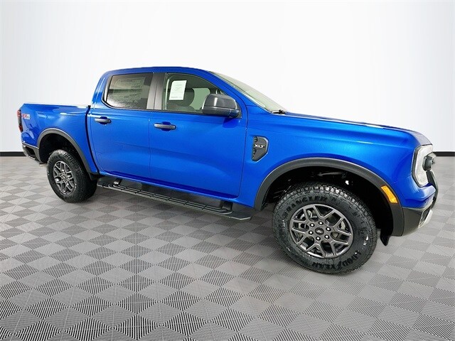 Recent Arrival! Blue 2025 Ford Ranger XLT 4WD EcoBoost 2.3L I4 GTDi DOHC Turbocharged VCT 4D Crew Cab 10-Speed Automatic 4WD, 120V/400W In-Cab & In-Bed Power Outlets, 4-Wheel Disc Brakes, 6 Speakers, ABS brakes, Advanced Towing Package, Air Conditioning, Alloy wheels, AM/FM radio: SiriusXM, AM/FM Stereo, Auto High-beam Headlights, Auto-dimming Rear-View mirror, Black Running Boards, Blk SecuriCode Wireless Keyless Entry Keypad (DIO), Brake assist, Class IV Trailer Hitch Receiver, Cloth Front Bucket Seats, Compass, Convenience Package, Delay-off headlights, Driver door bin, Driver vanity mirror, Dual front impact airbags, Dual front side impact airbags, Electronic Stability Control, Emergency communication system: SYNC 4 911 Assist, Equipment Group 300A Standard, Front anti-roll bar, Front Bucket Seats, Front Center Armrest, Front fog lights, Front License Plate Bracket, Front reading lights, Front wheel independent suspension, Fully automatic headlights, FX4 Off-Road Box Decal, FX4 Off-Road Package, FX4 Selectable Drive Modes, Gray Painted Center Bar & Grille Surround, Gray Painted Front Fascia & Rear Bumper, Illuminated entry, Integrated Box Side Step, Leather Shift Knob, Low tire pressure warning, Navigation system: Connected Navigation, Occupant sensing airbag, Off-Road Screen in Center Stack, Off-Road Tuned Shocks, Outside temperature display, Overhead airbag, Overhead console, Panic alarm, Passenger door bin, Passenger vanity mirror, Pickup Box Extender, Power door mirrors, Power steering, Power windows, Pro Trailer Backup Assist, Rear reading lights, Rear seat center armrest, Rear step bumper, Rear window defroster, Remote keyless entry, Security system, SiriusXM Satellite Radio, Speed control, Speed-sensing steering, Sport Appearance Package, Sport Box Decal, Steering wheel mounted audio controls, SYNC 4A w/Connected Navigation, Telescoping steering wheel, Tilt steering wheel, Traction control, Trail Control, Trailer Brake Controller, Trailer Tow Package, Tray Style Floor Liner, Trip computer, Variably intermittent wipers, Voltmeter, Wheels: 17" Gray-Painted Aluminum, Wireless Charging Pad.