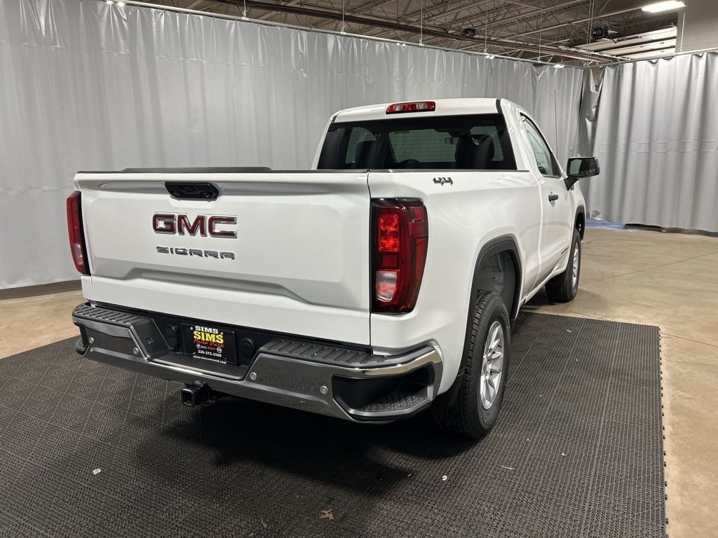 Summit White 2025 GMC Sierra 1500 Pro 4WD with a TurboMax engine and a full suite of safety features. This vehicle offers a comfortable ride, advanced technology, and a powerful engine. The interior is black and the exterior is Summit White.