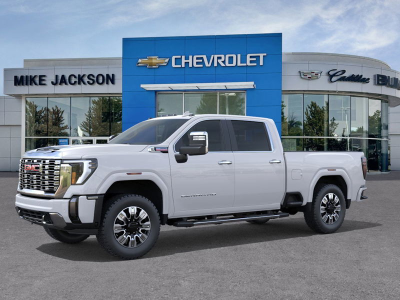 The 2025 GMC Sierra 2500HD Denali is a new, in-transit pickup featuring a Turbocharged Diesel V8 6.6L engine and a host of premium features. This Crew Cab model offers an extensive and personalized radio experience with SiriusXM's 360L, a 13.4" diagonal GMC Infotainment System with Google built-in apps, and a premium Bose Sound System. The interior includes heated front seats, ventilated front seats, heated rear seats, leather seats, and an Up-level front seat with storage. The vehicle features advanced safety features such as adaptive cruise control, lane departure warning, and a suite of driver assistance systems. The Sierra 2500HD Denali is designed for both heavy-duty work and luxury driving.