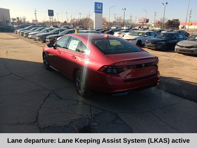 Drive Forever limited lifetime engine and transmission protection on all eligible new vehicles. Every new vehicle includes a complimentary rental vehicle when you have any Service completed for three full years. Conklin Automotive Hutchinson New Car Dealership near Wichita, Kansas. This stunning 2025 Honda Accord Hybrid EX-L in captivating Red is a testament to Honda's commitment to innovation and sustainability. With its exceptional fuel efficiency, advanced technology features, and premium interior appointments, this Accord Hybrid delivers an unparalleled driving experience that will exceed your expectations. Powered by a 2.0L I4 DOHC 16V engine and an efficient eCVT transmission, this Accord Hybrid delivers an impressive 51 MPG in the city and 44 MPG on the highway, making it an exceptional choice for the eco-conscious driver. The sleek and modern exterior design, combined with the spacious and well-appointed interior, creates a harmonious blend of style and functionality. Step inside the Accord Hybrid and you'll be greeted by a wealth of premium features, including dual-zone automatic climate control, a power moonroof, and a state-of-the-art infotainment system with Apple CarPlay and Android Auto integration. The leather-trimmed seats and heated front seats provide unparalleled comfort, while the Blind Spot Information System and Lane Keeping Assist System ensure your safety on the road. Boasting a suite of advanced safety technologies, the Accord Hybrid EX-L is designed to keep you and your loved ones protected. From the comprehensive airbag system to the Electronic Stability Control and Brake Assist, this vehicle is engineered to provide you with peace of mind every time you get behind the wheel. With a meticulous attention to detail and a commitment to excellence, this 2025 Honda Accord Hybrid EX-L is a true standout in the midsize sedan segment. Experience the perfect blend of efficiency, technology, and luxury by scheduling a test drive today. We're confident that this exceptional vehicle will exceed your expectations and become your trusted companion on the road.