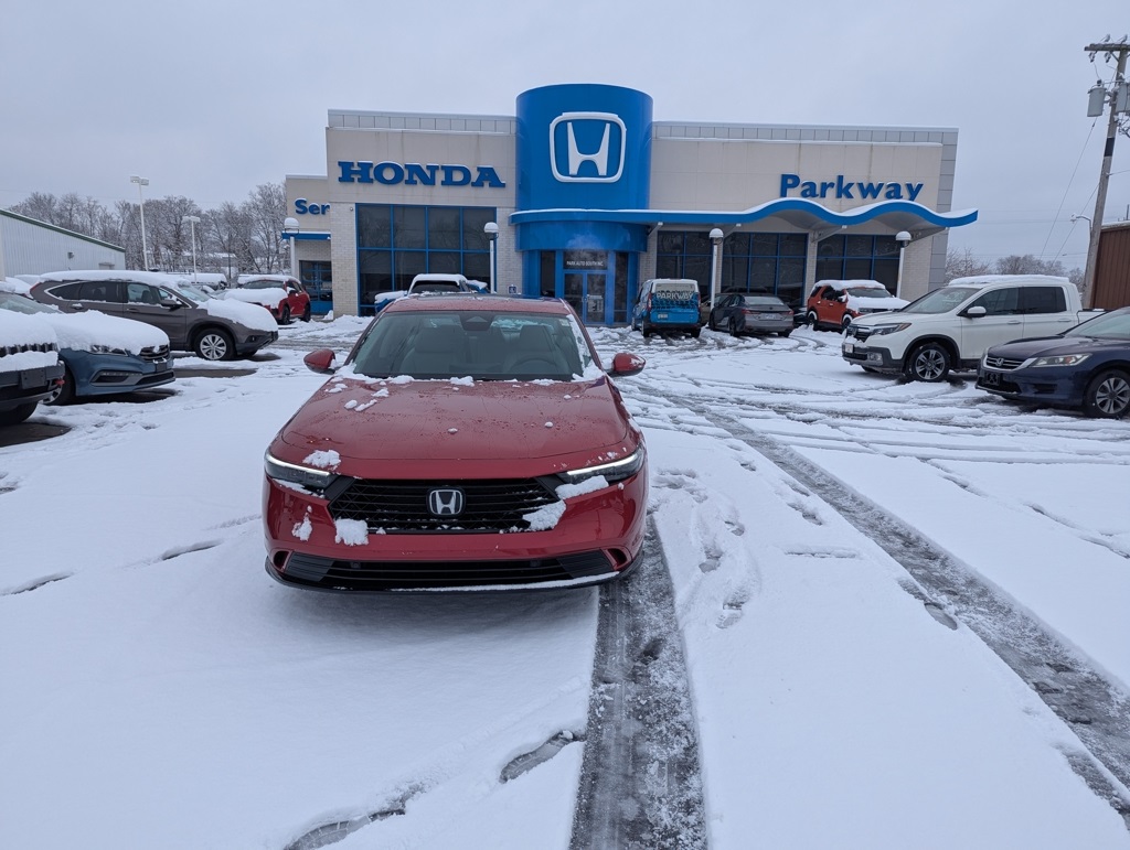 2025 Honda Accord Hybrid EX-L Radiant Red Metallic FWD 2.0L I4 DOHC 16V eCVT. 51/44 City/Highway MPG.