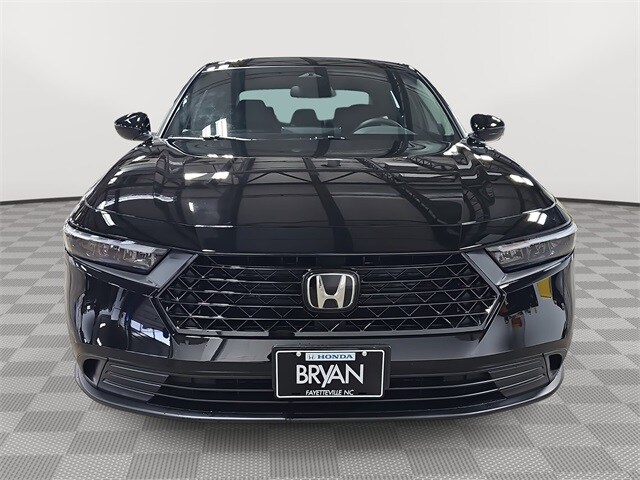 Recent Arrival! Crystal Black Pearl 2025 Honda Accord Hybrid Sport FWD 2.0L I4 DOHC 16V eCVT. This 2025 Honda Accord Hybrid Sport in Crystal Black Pearl features: 2.0L I4 DOHC 16V, 2.0L I4 DOHC 16V, 4-Wheel Disc Brakes, 8 Speakers, ABS brakes, Adaptive Cruise Control: Adaptive Cruise Control (ACC) with Low-Speed Follow, Air Conditioning, Alloy wheels, AM/FM radio, Apple CarPlay/Android Auto, Auto High-beam Headlights, Automatic temperature control, Blind Spot Information (BSI) System warning, Brake assist, Bumpers: body-color, Compass, Delay-off headlights, Driver door bin, Driver vanity mirror, Dual front impact airbags, Dual front side impact airbags, Electronic Stability Control, Emergency communication system: HondaLink, Exterior Parking Camera Rear, Fabric Seat Trim, Four wheel independent suspension, Front anti-roll bar, Front Bucket Seats, Front Center Armrest, Front dual zone A/C, Front reading lights, Fully automatic headlights, Heated Front Bucket Seats, Heated front seats, Illuminated entry, Knee airbag, Lane departure: Lane Keeping Assist System (LKAS) active, Leather Shift Knob, Leather steering wheel, Low tire pressure warning, Occupant sensing airbag, Outside temperature display, Overhead airbag, Overhead console, Panic alarm, Passenger door bin, Passenger vanity mirror, Power door mirrors, Power driver seat, Power moonroof, Power steering, Power windows, Radio data system, Radio: 180-Watt Audio System, Rear anti-roll bar, Rear reading lights, Rear seat center armrest, Rear side impact airbag, Rear window defroster, Remote keyless entry, Security system, Speed control, Speed-sensing steering, Speed-Sensitive Wipers, Split folding rear seat, Spoiler, Steering wheel mounted audio controls, Telescoping steering wheel, Tilt steering wheel, Traction control, Trip computer, Variably intermittent wipers, Wheels: 19" x 8.5J Berlina Black.