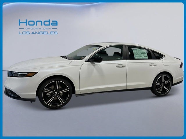 Platinum White Pr 2025 Honda Accord Hybrid Sport FWD eCVT 2.0L I4 DOHC 16V 2.0L I4 DOHC 16V. Welcome to Honda of Downtown Los Angeles! Recent Arrival! 46/41 City/Highway MPG
