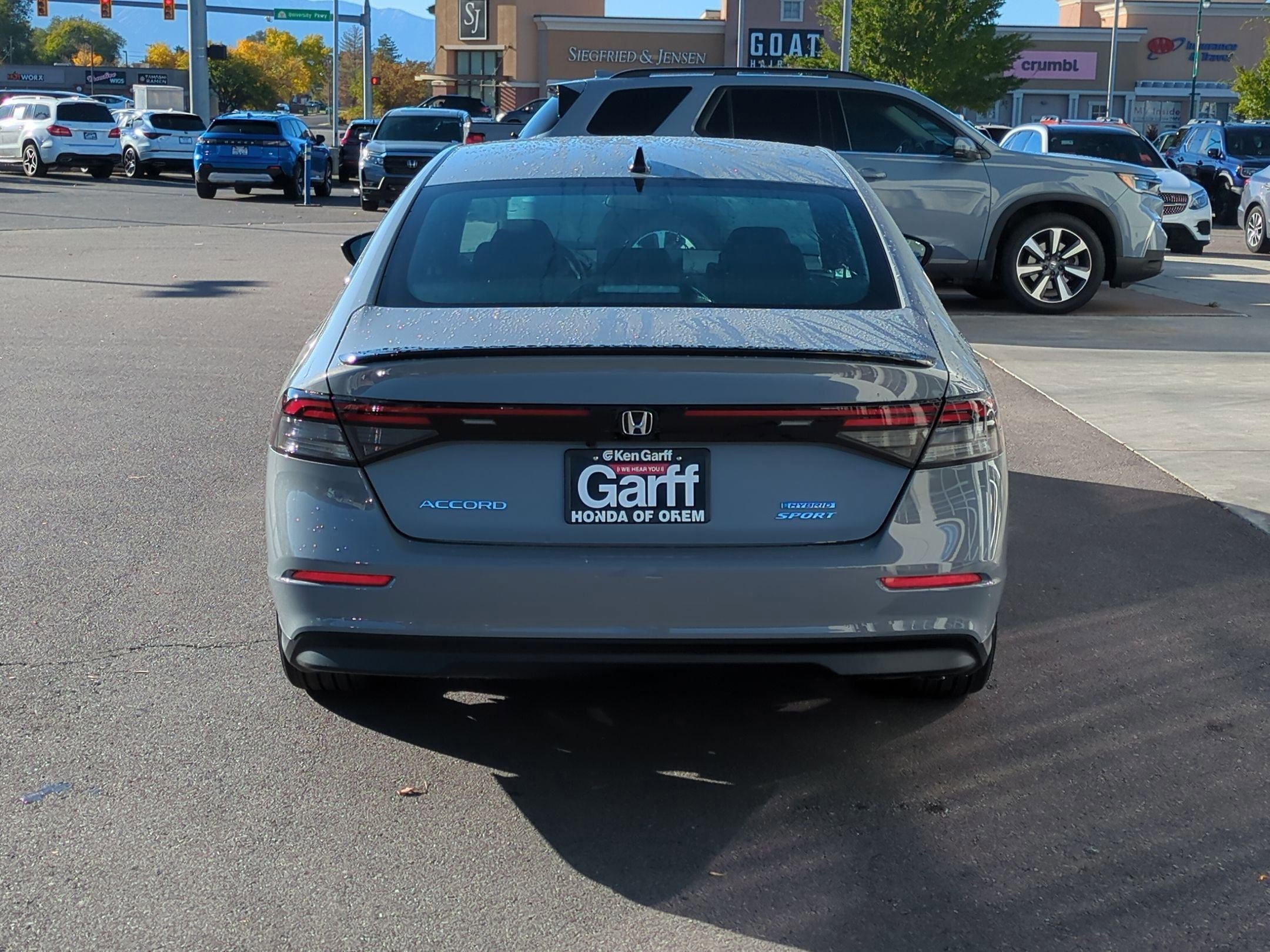 Ken Garff Honda is delighted to offer this good-looking 2025 Honda Accord Hybrid Sport in Urban Gray Pearl. FWD Sport eCVT2.0L I4 DOHC 16V, 4-Wheel Disc Brakes, 8 Speakers, Adaptive Cruise Control with Low-Speed Follow, Air Conditioning, Alloy wheels, AM/FM radio, Apple CarPlay/Android Auto, Auto High-beam Headlights, Blind Spot Information System warning, Brake assist, Bumpers: body-color, Compass, Delay-off headlights, Driver door bin, Driver vanity mirror, Dual front impact airbags, Dual front side impact airbags, Electronic Stability Control, Emergency communication system: HondaLink, Exterior Parking Camera Rear, Fabric Seat Trim, Four wheel independent suspension, Front anti-roll bar suspension, Heated Front Bucket Seats, Knee airbag, Lane departure: Lane Keeping Assist System active, Leather Shift Knob, Leather steering wheel, Low tire pressure warning, Occupant sensing airbag, Outside temperature display, Overhead airbag, Overhead console, Panic alarm, Passenger door bin, Passenger vanity mirror, Power door mirrors, Power driver seat, Power moonroof, Power steering, Power windows, Radio data system, Radio: 180-Watt Audio System, Rear anti-roll bar, Rear reading lights, Rear seat center armrest, Rear side impact airbag, Rear window defroster, Remote keyless entry, Security system, Speed control, Speed-sensing steering, Speed-Sensitive Wipers, Split folding rear seat, Spoiler, Steering wheel mounted audio controls, Telescoping steering wheel, Tilt steering wheel. Fuel Economy estimates are based on EPA mileage ratings. Actual mileage will vary depending on driving conditions, habits, vehicle maintenance and other factors.