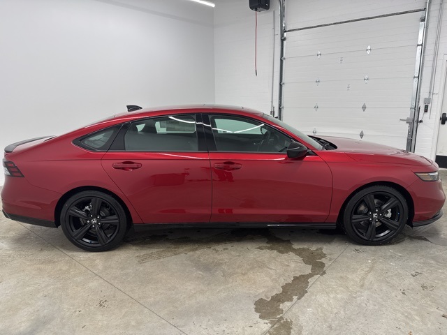 Honda Accord Hybrid Sport-L combines impressive fuel efficiency with upscale comfort and a sporty edge. Under the hood, its advanced hybrid powertrain delivers smooth, responsive acceleration and excellent gas mileage, making it ideal for both city commutes and highway cruising. The Sport-L trim elevates the experience with leathertrimmed seating and heated front seats, while the dual-zone automatic climate control and a power-adjustable driver's seat add comfort for everyone on board. A sleek infotainment system features a large touchscreen, wireless Apple CarPlay and Android Auto, and a premium audio setup that makes every drive more enjoyable. On the outside, bold alloy wheels, subtle sporty accents, and elegant styling give the Accord a refined yet athletic look. Safety is well covered thanks to the full suite of Honda Sensing features, including adaptive cruise control, lane keeping assist, collision mitigation braking, and moreensuring confidence wherever you go. With its blend of hybrid efficiency, thoughtful luxury touches, and dependable performance, this Accord Hybrid Sport-L is a smart, stylish choice.