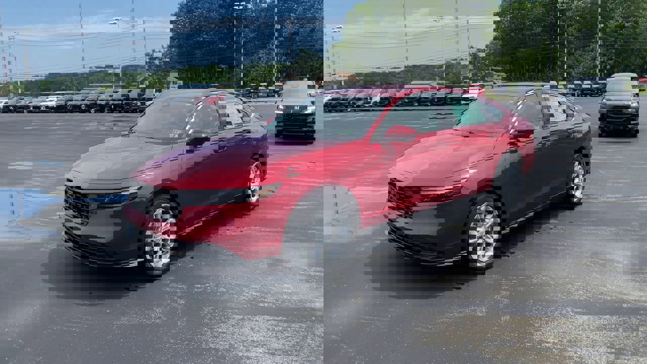The 2025 Honda Accord Sedan LX in Radiant Red Metallic offers a blend of efficiency and technology. With a turbocharged 1.5L engine and a spacious interior, this sedan is designed for comfort and convenience. Enjoy features like an adaptive cruise control, Apple CarPlay, Android Auto, and a Wi-Fi hotspot, all wrapped in a stylish and modern exterior.