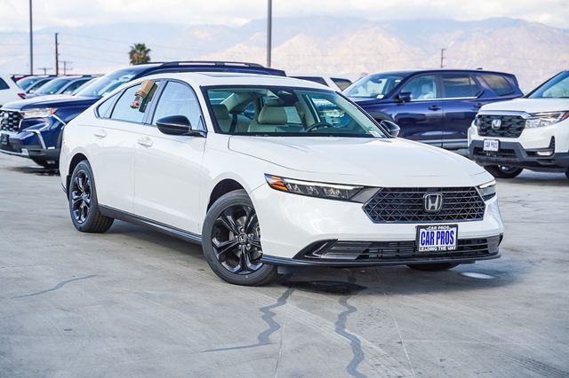 2025 Honda Accord SE Platinum White Pearl Dealer Discount of $446 off MSRP Car Pros has a hassle free return policy. 3 days or 200 miles from time of delivery. FWD CVT 1.5T I4 DOHC 16V Turbocharged VTEC 29/37 City/Highway MPG Price does not include tax, title, license, or document fees or any dealer added accessories. Images are for illustration purposes only. Prices shown are manufacturer suggested retail prices only and do not include taxes, license, or doc fee. Manufacturer vehicle accessory costs, labor and installation vary. All Pricing and Advertised Prices for all vehicles offered for sale does not include any dealer accessory. Please contact us with any questions. Based on 2022 EPA mileage ratings. Use for comparison purposes only. Your mileage will vary depending on driving conditions, how you drive and maintain your vehicle, battery-pack age/condition, and other factors.