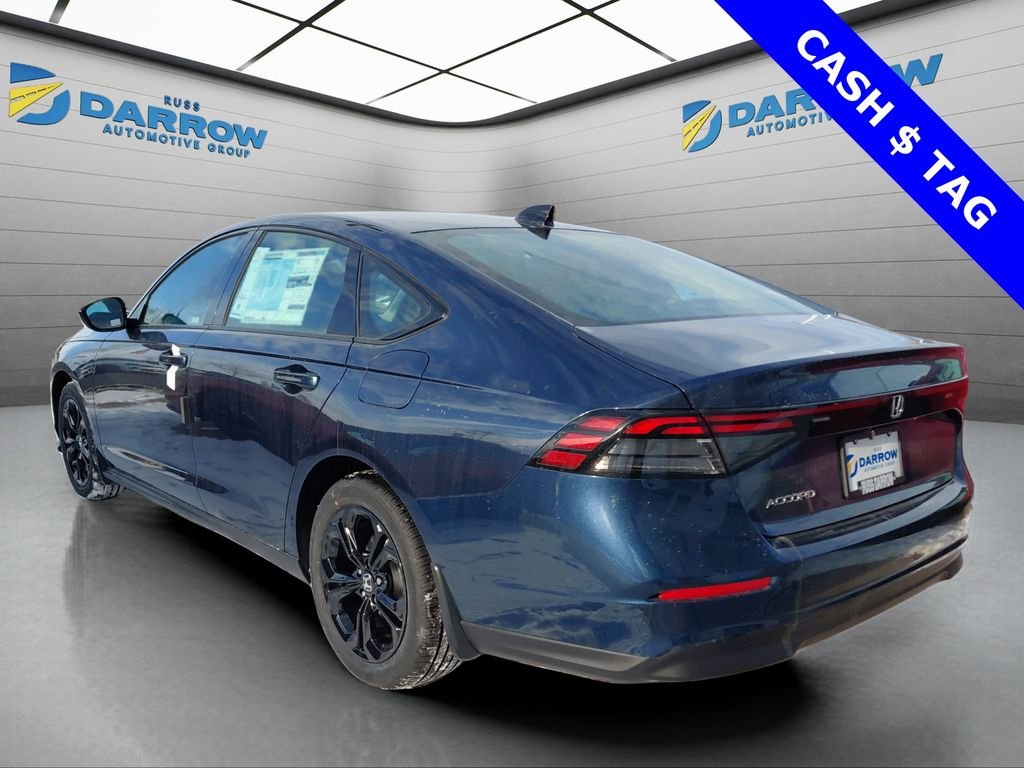 2025 Honda Accord SE 1.5T I4 DOHC 16V Turbocharged VTEC Canyon River Blue Metallic FWD CVT BLUETOOTH(R) CONNECTION FOR MOBILE PHONE, REAR BACK-UP CAMERA w/DISPLAY, ANDROID AUTO & APPLE CARPLAY, BLIND SPOT MONITORING, HEATED FRONT SEATS, LANE KEEP ASSIST, Automatic temperature control, Electronic Stability Control, Front dual zone A/C, Power driver seat, Remote keyless entry, Steering wheel mounted audio controls. Includes exclusive membership status in the Russ Darrow Rewards Program. Earn points for every dollar spent on goods and services at any Russ Darrow location, plus extra points if purchasing packages with the Finance office. Use these points on your next new or used vehicle purchase at any Russ Darrow Dealership. You will earn $10 for every 1,000 points redeemed, up to a maximum redemption of $500 per transaction. For more detailed information visit russdarrowrewards.com.