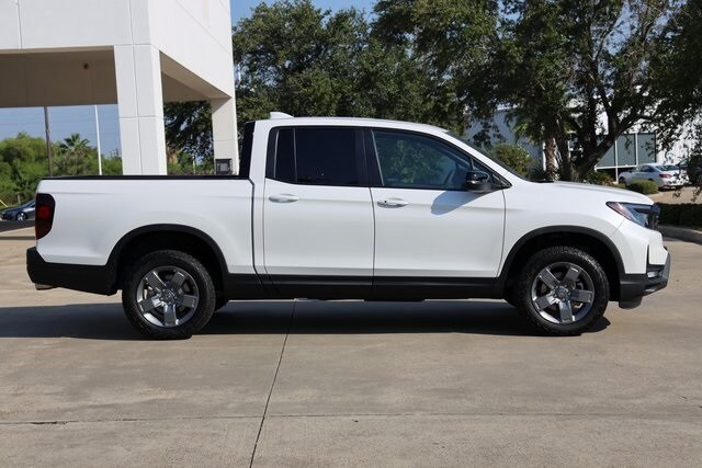 Platinum White Pearl 2025 Honda Ridgeline TrailSport AWD 9-Speed Automatic 3.5L V6 SOHC i-VTEC 24V 4-Wheel Disc Brakes, 4.33 Axle Ratio, 7 Speakers, ABS brakes, Air Conditioning, Alloy wheels, AM/FM radio: SiriusXM, Automatic temperature control, Blind Spot Information (BSI) System warning, Bluetooth Hands-Free Link, Brake assist, Compass, Delay-off headlights, Electronic Stability Control, Emergency communication system: HondaLink Assist, Exterior Parking Camera Rear, Four wheel independent suspension, Front anti-roll bar, Front Bucket Seats, Front dual zone A/C, Front fog lights, Fully automatic headlights, Garage door transmitter: HomeLink, Heated door mirrors, Heated Front Bucket Seats, Heated front seats, Heated steering wheel, Honda Satellite-Linked Navigation System, Illuminated entry, Leather Seat Trim, Leather steering wheel, Low tire pressure warning, Memory seat, Navigation system: Honda Satellite-Linked Navigation System, Outside temperature display, Panic alarm, Power door mirrors, Power driver seat, Power moonroof is not included in price. Prices may be different outside of each advertised period and do not necessarily reflect cash price at any other time. Inventory is subject to prior sale. We are not responsible for typographical errors.