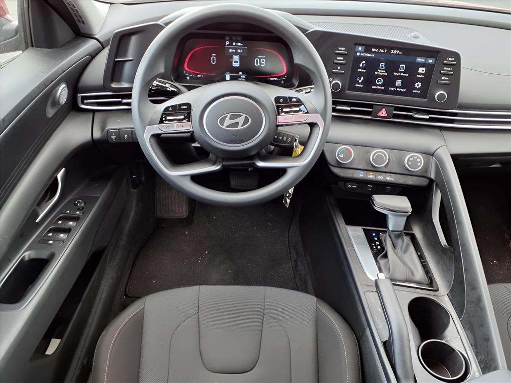Ultimate Red 2025 Hyundai Elantra SE SRC 4D Sedan I4 FWD CVT 15" x 6.0J Alloy Wheels, 4-Wheel Disc Brakes, 6 Speakers, ABS brakes, Air Conditioning, Alloy wheels, AM/FM radio, Apple CarPlay & Android Auto, Auto High-beam Headlights, Brake assist, Bumpers: body-color, Cargo Blocks, Cargo Package, Carpeted Floor Mats, Delay-off headlights, Driver door bin, Driver vanity mirror, Dual front impact airbags, Dual front side impact airbags, Electronic Stability Control, Exterior Parking Camera Rear, First Aid Kit, Front anti-roll bar, Front Bucket Seats, Front Center Armrest, Front reading lights, Front wheel independent suspension, Fully automatic headlights, Illuminated entry, Low tire pressure warning, Occupant sensing airbag, Option Group 01, Outside temperature display, Overhead airbag, Overhead console, Panic alarm, Passenger door bin, Passenger vanity mirror, Power door mirrors, Power steering, Power windows, Premium Cloth Seat Trim, Radio: AM/FM/HD Display Audio, Rear Bumper Applique, Rear side impact airbag, Rear window defroster, Remote keyless entry, Reversible Cargo Tray, Security system, Speed control, Speed-sensing steering, Steering wheel mounted audio controls, Tachometer, Telescoping steering wheel, Tilt steering wheel, Traction control, Trip computer, Variably intermittent wipers, Wheel Locks.