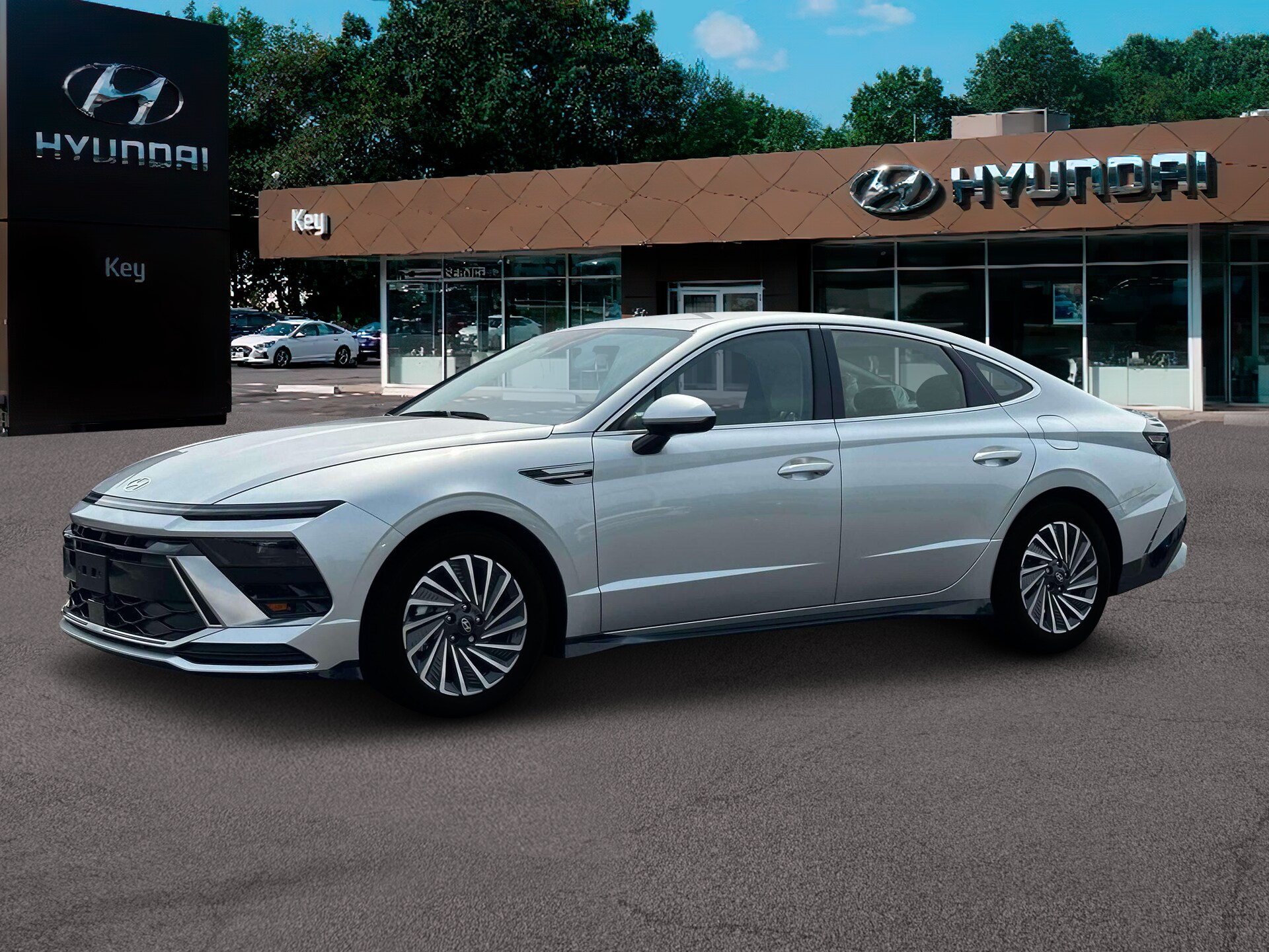 "2025 Hyundai Sonata Hybrid Limited Limited Silver I4. This Sonata Hybrid Limited is nicely equipped with Option Group 01 I4 12 Speakers 17\"x 7.0J Aluminum Alloy Wheels 4-Wheel Disc Brakes ABS brakes Air Conditioning Alloy wheels AM/FM radio: SiriusXM Apple CarPlay & Android Auto Auto High-beam Headlights Auto-dimming Rear-View mirror Automatic temperature control Brake assist Bumpers: body-color Cargo Net Cargo Tray Carpeted Floor Mats Delay-off headlights Driver door bin Driver vanity mirror Dual front impact airbags Dual front side impact airbags Electronic Stability Control Emergency communication system: Bluelink+ First Aid Kit Four wheel independent suspension Front anti-roll bar Front Bucket Seats Front Center Armrest Front dual zone A/C Front reading lights Fully automatic headlights Heads-Up Display Heated & Ventilated Front Bucket Seats Heated door mirrors Heated front seats Heated steering wheel Illuminated entry Knee airbag Lane Departure Warning System Leather Seating Surfaces Leather steering wheel Low tire pressure warning Memory seat Navigation System Occupant sensing airbag Outside temperature display Overhead airbag Overhead console Panic alarm Passenger door bin Passenger vanity mirror Power door mirrors Power driver seat Power moonroof Power passenger seat Power steering Power windows Radio data system Radio: AM/FM/HD/SiriusXM Rain sensing wipers Rear anti-roll bar Rear seat center armrest Rear side impact airbag Rear window defroster Remote keyless entry Security system Speed control Speed-sensing steering Speed-Sensitive Wipers Split folding rear seat Spoiler Steering wheel mounted audio controls Tachometer Telescoping steering wheel Tilt steering wheel Traction control Trip computer Variably intermittent wipers and Ventilated front seats. Call 603-841-3099 to schedule your contact free test drive today!"