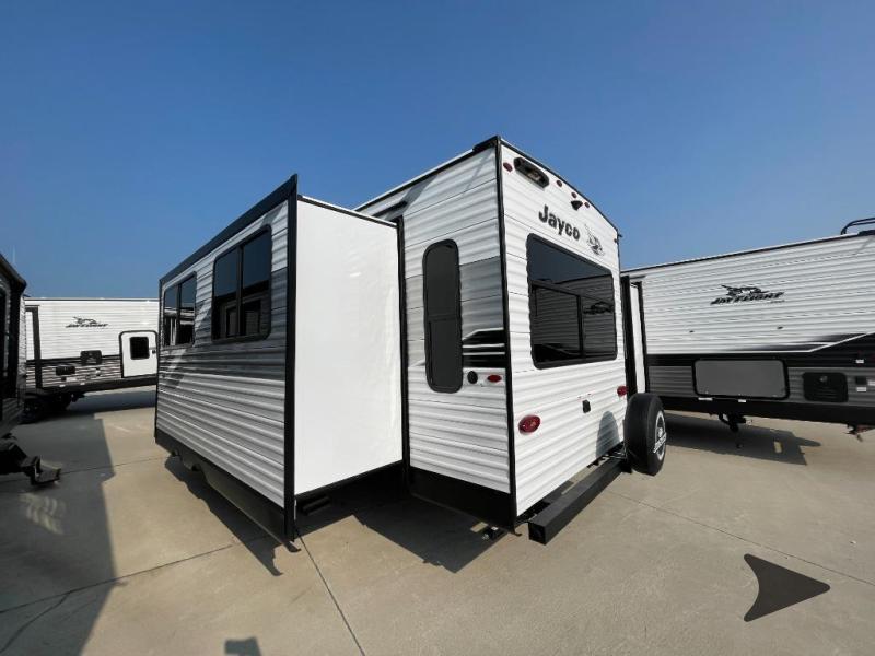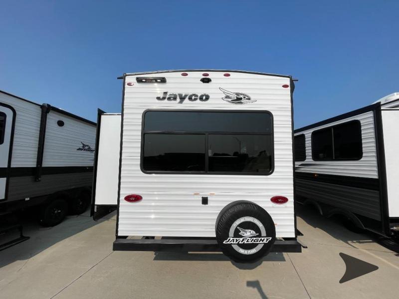 Jayco Jay Flight SLX travel trailer 262RLS highlights: Private Bedroom, Jack-Knife Sofa, Radius Shower, Rear Living Area. You can comfortably sleep up to six people in this trailer thanks to the RV queen bed in the front bedroom, plus the booth dinette and jack-knife sofa in the main living area! The chef of your crew will have a three burner cooktop and microwave oven to prepare meals, and everyone can store their favorite drinks in the 8 cu. ft. 12V refrigerator. The walk-through bath is spacious and includes a radius shower, toilet, a sink, and linen closet and is the full width of the unit. The outside storage will let you bring along camp chairs and games, fishing poles and more, plus the 18' 3" power awning with LED lights will create a nice place to gather in the evenings! The Jayco Jay Flight SLX travel trailer is quite easy to own because it is lightweight for an easier towing experience. Built on a fully integrated A-frame with galvanized-steel, impact-resistant wheel wells, the Jay Flight SLX has quality at its very foundation. That quality continues on to the electric self-adjusting brakes, easy-lube hubs, Magnum Truss roof system, and LP quick connect. Some of what the mandatory Customer Value Package includes is backup camera prep, Keyed-Alike entry and baggage doors, marine grade exterior speakers, and an on-demand tankless water heater.