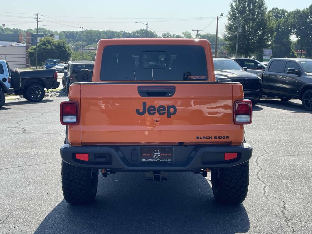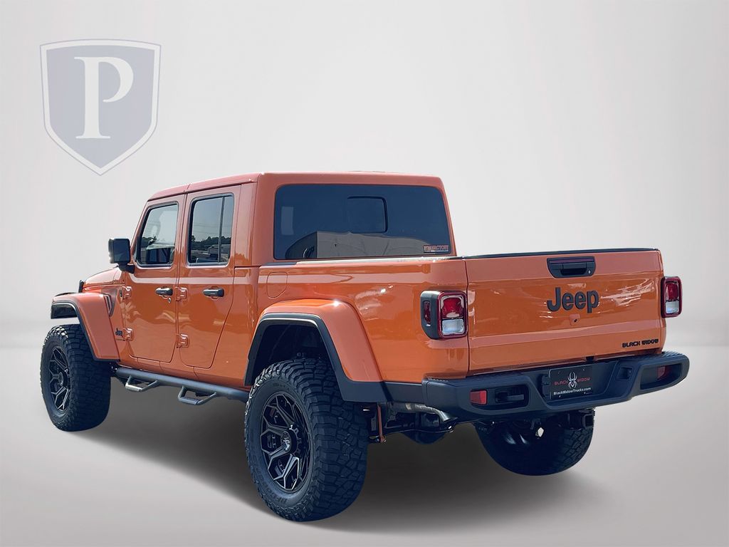 The 2025 Jeep Gladiator Sport Black Widow with the Black Widow Upfit Package features a 3-Inch Lift, FOX Adventure Series Shocks, 35-Inch Tires on 20-Inch Off-Road Wheels, a 20-Inch LED Light Bar, a 10,000LB Winch, and Black Widow Interior & Exterior Upgrades for premium off-road performance and custom styling. Power comes from a 3.6L V6 engine paired with an 8-Speed Automatic transmission and 4WD capability. Finished in Joose Orange with a MOPAR Spray-In Bedliner, this 4D Crew Cab offers rugged durability and modern refinement, highlighted by a Black interior with Premium McKinley Trimmed Leather Seats and an Alpine Premium Audio System for crisp, immersive sound. Comfort and convenience features include Leather Seats, Heated Seats, Heated Steering Wheel, Multi-Zone Climate Control, Remote Start, Remote Keyless Entry, and Sunroof / Moonroof. Technology and safety highlights include a Touchscreen Radio with GPS Navigation, Apple CarPlay/Android Auto, SiriusXM Ready, Bluetooth for seamless connectivity. A Back-Up Camera and Adaptive Cruise Control enhance safety and awareness. The Gladiator Sport Black Widow combines legendary Jeep capability, advanced technology and bold custom design.