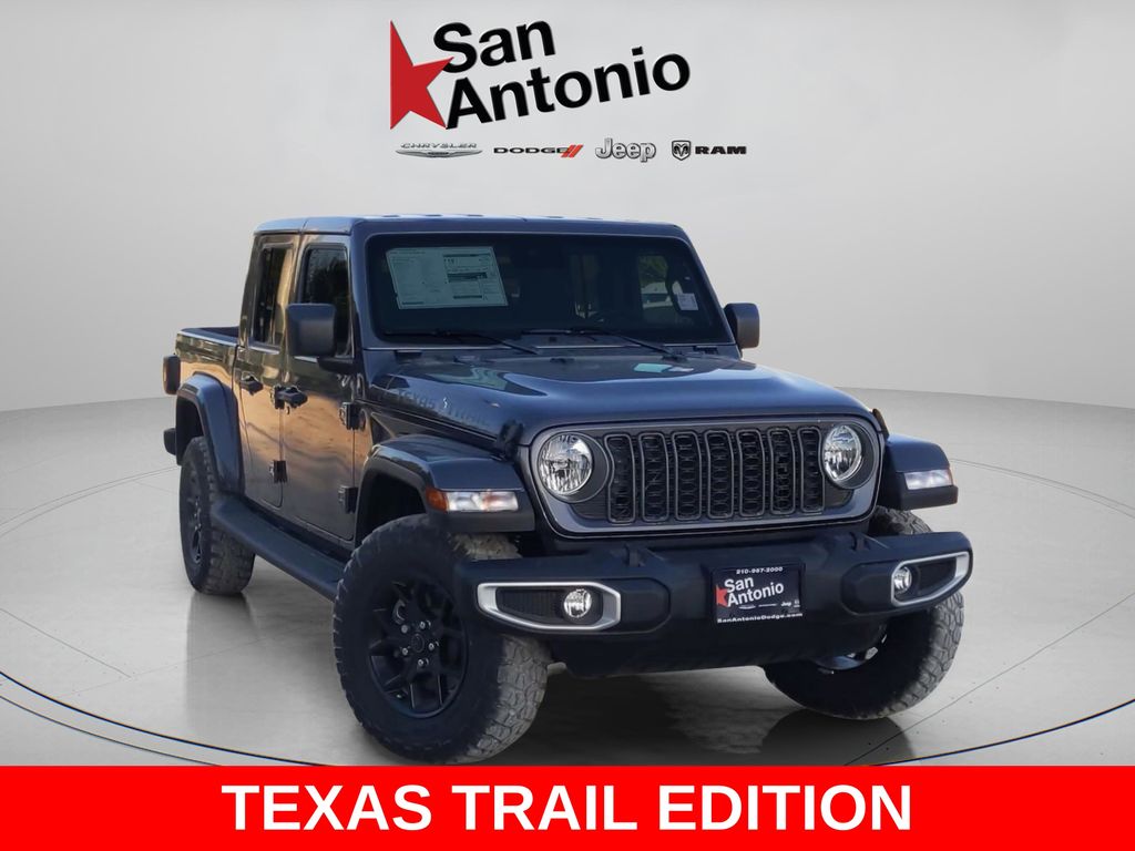 Discover the ultimate off-road companion with the 2025 Jeep Gladiator Texas Trail. This rugged and capable pickup is built to conquer any terrain, delivering unparalleled performance and uncompromising style. Under the hood, this Gladiator is powered by a robust 3.6L V6 24V VVT engine, paired with an 8-Speed Automatic transmission and 4WD capabilities. With 17 MPG in the city and 22 MPG on the highway, it delivers impressive fuel efficiency without sacrificing performance. The exterior of the Gladiator Texas Trail is equally impressive, featuring a Gray paint color, body color fender flares, and the iconic Jeep design cues that command attention on the road. Step inside, and you'll be greeted by a premium, leather-wrapped cabin that combines comfort and convenience, including heated front seats, a heated steering wheel, and a 12.3-inch touchscreen display with the latest connectivity features. Whether you're tackling the toughest trails or navigating the urban jungle, the 2025 Jeep Gladiator Texas Trail is the ultimate adventure companion. With its uncompromising capability, refined interior, and head-turning style, this Gladiator is the perfect choice for those who demand the best. Experience the thrill of the open road and the freedom of the great outdoors. Visit our showroom today and discover the 2025 Jeep Gladiator Texas Trail — the ultimate off-road warrior.