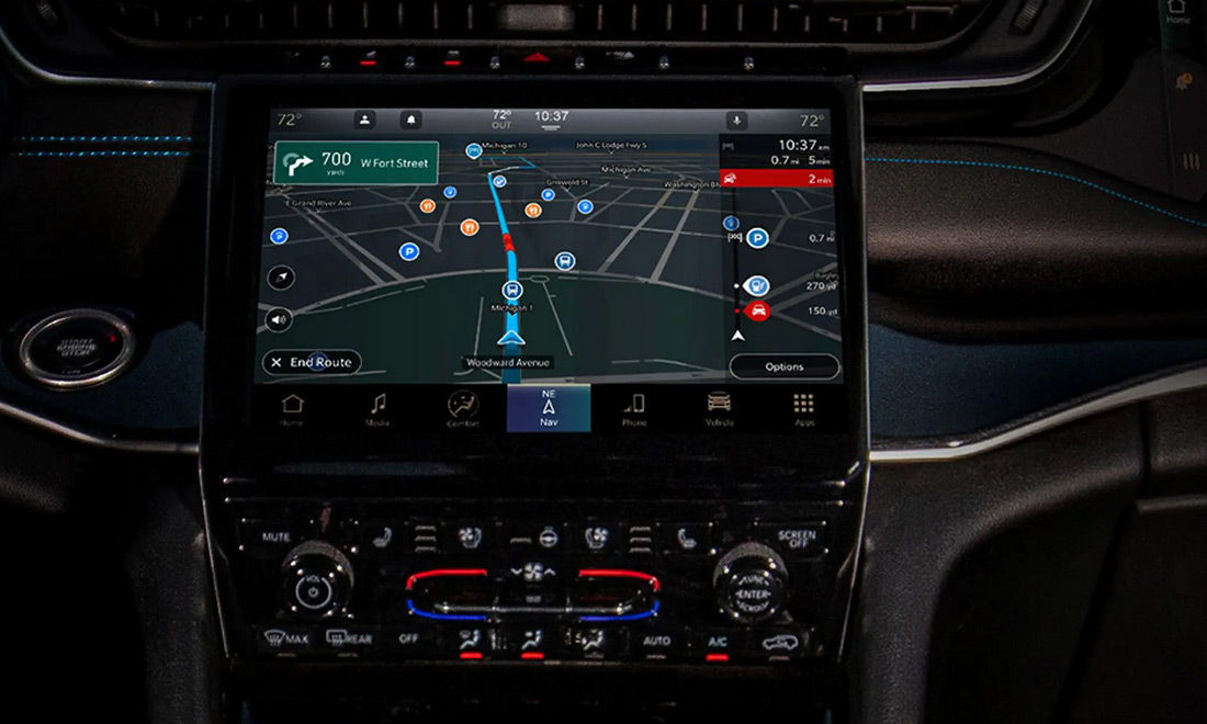 The crown jewel of Jeep’s selection, Grand Cherokee is synonymous with usefulness. Capable of taking on off-road surfaces with no issues, this sought-after SUV is just as effective at traversing the bustling roads of Pine City. For any person planning to own or lease a vehicle that brings them the optimal mix of of ruggedness and coziness, we at Eide CDJR Pine City have just the automobile for you. Drive on over and check out our leasing and buying options today. No new car is finished without cutting-edge infotainment, and the brand-new Grand Cherokee reaches this, as you are able to see below. With Uconnect at your service, truly utilizing the power of modern technology has never been more convenient. Altogether, you can have in-car Wi-Fi with Uconnect, which also provides access to functions like weather and current traffic reports, Bluetooth, voice-command operating, and a navigation setup. Do you not deserve a large quantity of premium tech features to go with Pine City's most liked in-cabin setting? As a utility vehicle, you would expect the brand-new Grand Cherokee to contain all of the sitting and cargo space you want. The newest model does not dissatisfy. A 60/40 rear seat that pushes down flat allows you to tackle your cargo capacities swiftly, and with the whole rear seat leveled, you will gain 68 cu.-ft. of storage volume. With the second row of chairs in their original position, you will have 36 cu.-ft. of volume. If you are regularly hauling large, elongated gear, there is an optional fold-flat passenger seat, so you can set up increased length to pack oversized cargo. Along with all of this, the Grand Cherokee has numerous storage bins and cubbies for you and your passengers to stash items.