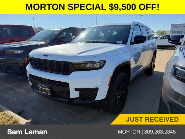 2025 Jeep Grand Cherokee L Altitude X Bright White Clearcoat 4WD 8-Speed Automatic 3.6L V6 24V VVT 18/25 City/Highway MPG. Located only at Sam Leman Chrysler Dodge Jeep Ram in Morton, IL only. Call today to set up a test drive 309-291-9595.