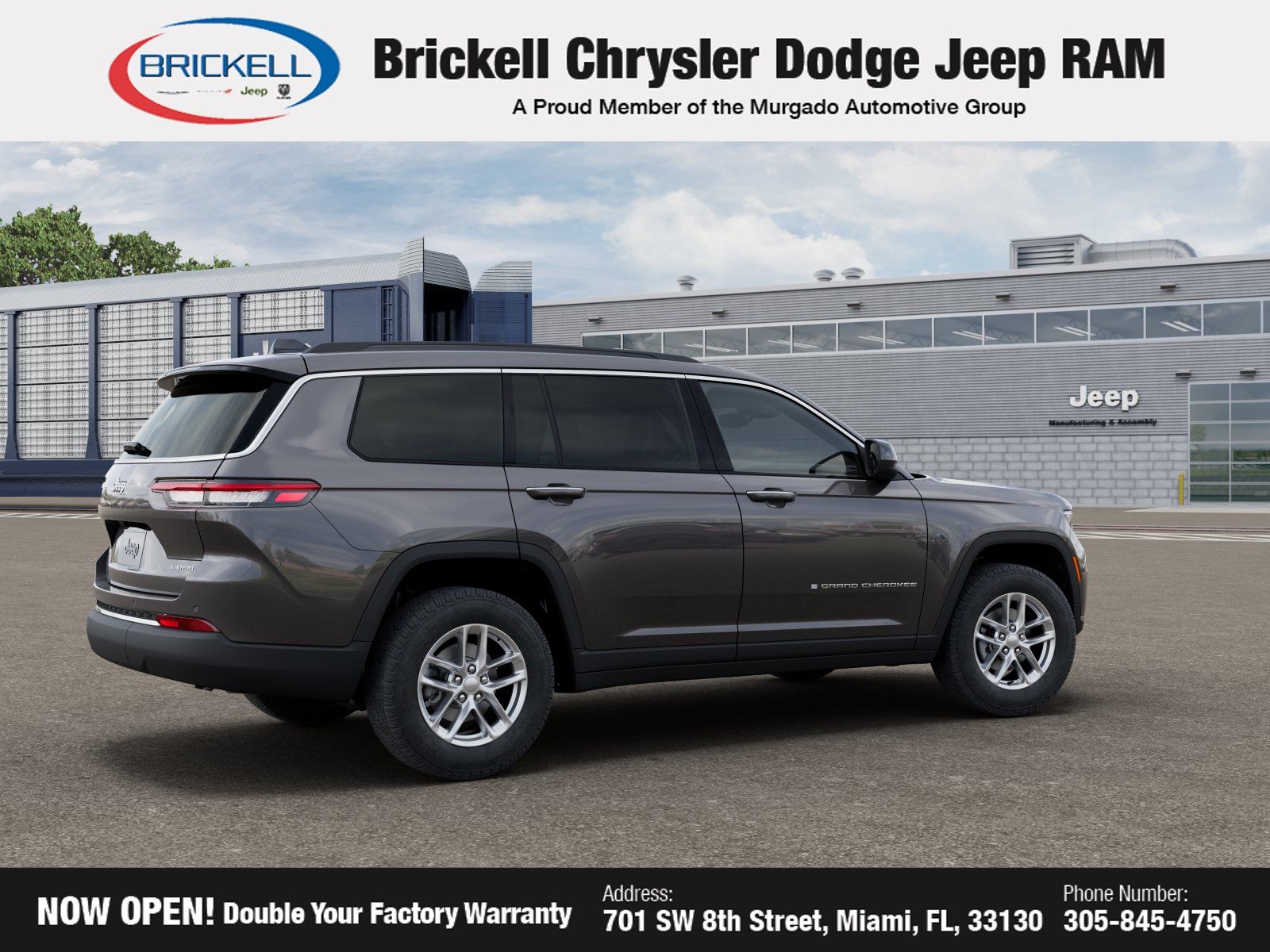 Discover Your Next Vehicle at Brickell Chrysler Dodge Jeep Ram Welcome to Brickell CDJR, where we go beyond selling cars. We double the factory powertrain warranty, giving you added peace of mind. Our dealership offers one of the largest new car inventories in the region, ensuring you find the right vehicle. Prices displayed do not include our Perma-plate. Our state-of-the-art service department is the largest in the country and is open seven days a week from 7 AM to 9 PM. Visit us at 701 SW 8th St, Miami, FL 33130, or call 305-777-2800 to learn more and schedule a test drive. The displayed price includes an incentive for financing with Brickell CDJR Finance Company. Outside financing and bank drafts are not accepted. All pre-owned vehicle exports are subject to an export fee. Prices apply only to customers who live, work, or worship in Broward, Miami-Dade, Palm Beach, Monroe, Collier, Hendry, Lee, Glades, Martin, St. Lucie, Okeechobee, Manatee, Hillsborough, Osceola, or Orange County. Customers outside these counties will pay an additional $ Taxes, title, registration, and dealer fees apply.