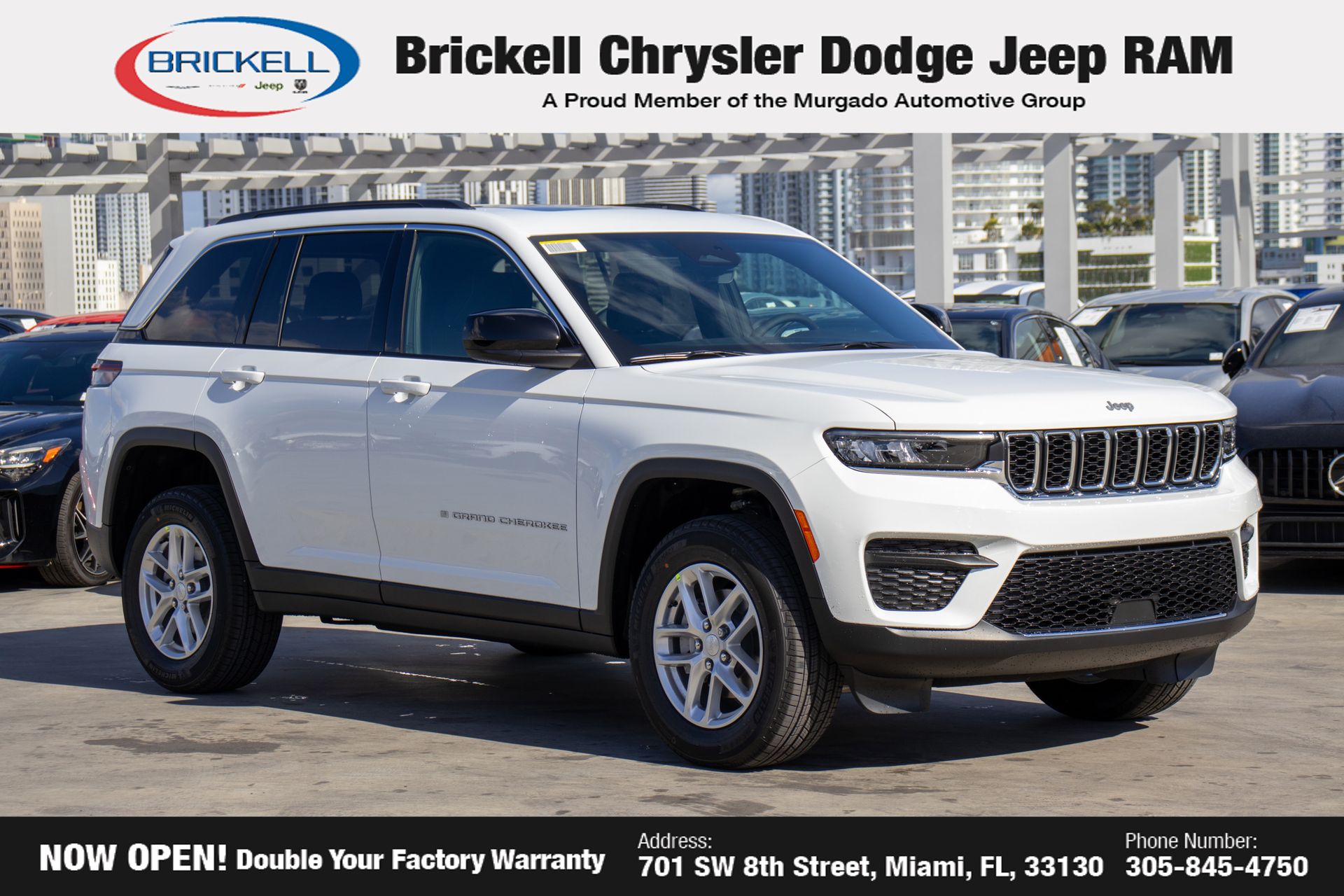 Discover Your Next Vehicle at Brickell Chrysler Dodge Jeep Ram Welcome to Brickell CDJR, where we go beyond selling cars. We double the factory powertrain warranty, giving you added peace of mind. Our dealership offers one of the largest new car inventories in the region, ensuring you find the right vehicle Prices displayed do not included our Perma-plate. Our state-of-the-art service department is the largest in the country and is open seven days a week from 7 AM to 9 PM. Visit us at 701 SW 8th St, Miami, FL 33130, or call 305-777-2800 to learn more and schedule a test drive. The displayed price includes an incentive for financing with Brickell CDJR Finance Company. Outside financing and bank drafts are not accepted. All pre-owned vehicle exports are subject to an export fee. Prices apply only to customers who live, work, or worship in Broward, Miami-Dade, Palm Beach, Monroe, Collier, Hendry, Lee, Glades, Martin, St. Lucie, Okeechobee, Manatee, Hillsborough, Osceola, or Orange County. Customers outside these counties will pay an additional $.