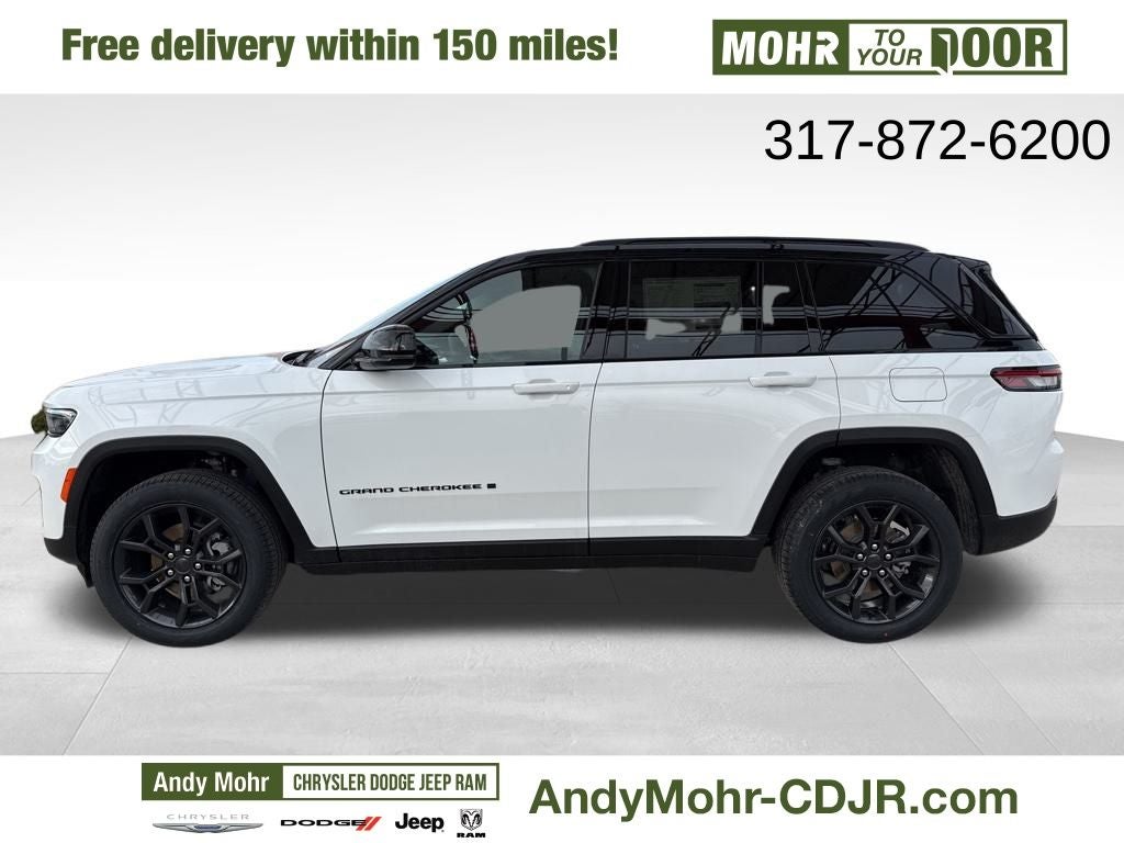 Andy Mohr Chrysler Dodge Jeep Ram is pumped up to offer this 2025 Jeep Grand Cherokee Limited in Bright White Clearcoat with Global Black Artificial Leather. This Grand Cherokee is very well equipped. Welcome to Andy Mohr Chrysler Dodge Jeep Ram dealership at 4505 W. 96th Street, Indianapolis, IN 46268. Visit our website at www.andymohr-cdjr.com. You consent to receive autodialed, pre-recorded and artificial voice telemarketing and sales calls, text messages and/or emails from or on behalf of Andy Mohr.