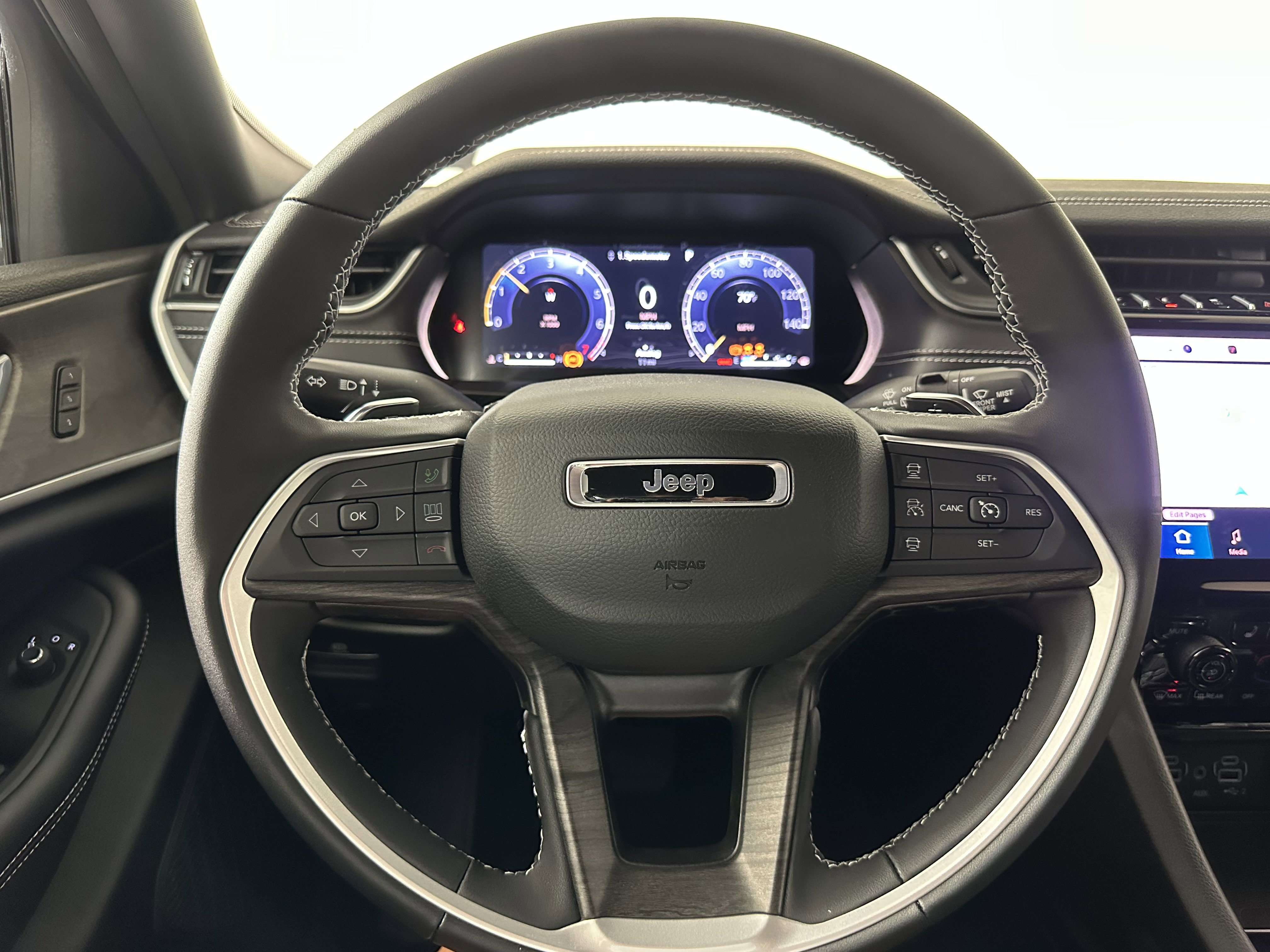 2025 Jeep Grand Cherokee Limited Bright White Clearcoat 4WD. Black Appearance Package (Gloss Black Exterior Accents and Wheels: 20 x 8.5 Gloss Black Painted Aluminum), Luxury Tech Group II (2nd-Row Manual Window Shades, Auto-Dimming Exterior Driver Mirror, Capri Leatherette with Axis II Seats, Front/Rear Doors and Liftgate with Passive Entry, Integrated Off-Road Camera, Intersection Collision Assist System, Memory Steering Column, ParkSense Front/Rear Park Assist with Stop, Power Tilt/Telescope Steering Column, Rain Sensitive Windshield Wipers, Rear Back-Up Camera Washer, Rearview Autodim Digital Display Mirror, Surround View Camera System, Ventilated Front Seats, and Wireless Charging Pad), Quick Order Package 22E, 4WD, 4-Wheel Disc Brakes, 6 Speakers, ABS brakes, Active Noise Control System, Air Conditioning, Alloy wheels, AM/FM radio: SiriusXM with 360L, Anti-whiplash front head restraints, Audio memory, Auto High-beam Headlights, Automatic temperature control, Brake assist, Bumpers: body-color, Capri Leatherette Seats, Compass, Delay-off headlights, Driver door bin, Driver vanity mirror, Dual front impact airbags, Dual front side impact airbags, Dual-Pane Panoramic Sunroof, Electronic Stability Control, Emergency communication system, Four wheel independent suspension, Front anti-roll bar, Front Bucket Seats, Front Center Armrest w/Storage, Front dual zone A/C, Front fog lights, Front reading lights, Fully automatic headlights, Garage door transmitter, Heated door mirrors, Heated front seats, Heated rear seats, Heated steering wheel, Illuminated entry, Knee airbag, Low tire pressure warning, Memory seat, Model Year Tracking, Navigation System, Normal Duty Suspension, Occupant sensing airbag, Outside temperature display, Overhead airbag, Overhead console, Panic alarm, ParkView Rear Back-Up Camera, Passenger door bin, Passenger vanity mirror, Power door mirrors, Power driver seat, Power Liftgate, Power passenger seat, Power steering, Power windows, Radio data system, Radio: Uconnect 5 Nav with 10.1 Display, Rear anti-roll bar, Rear reading lights, Rear window defroster, Rear window wiper.