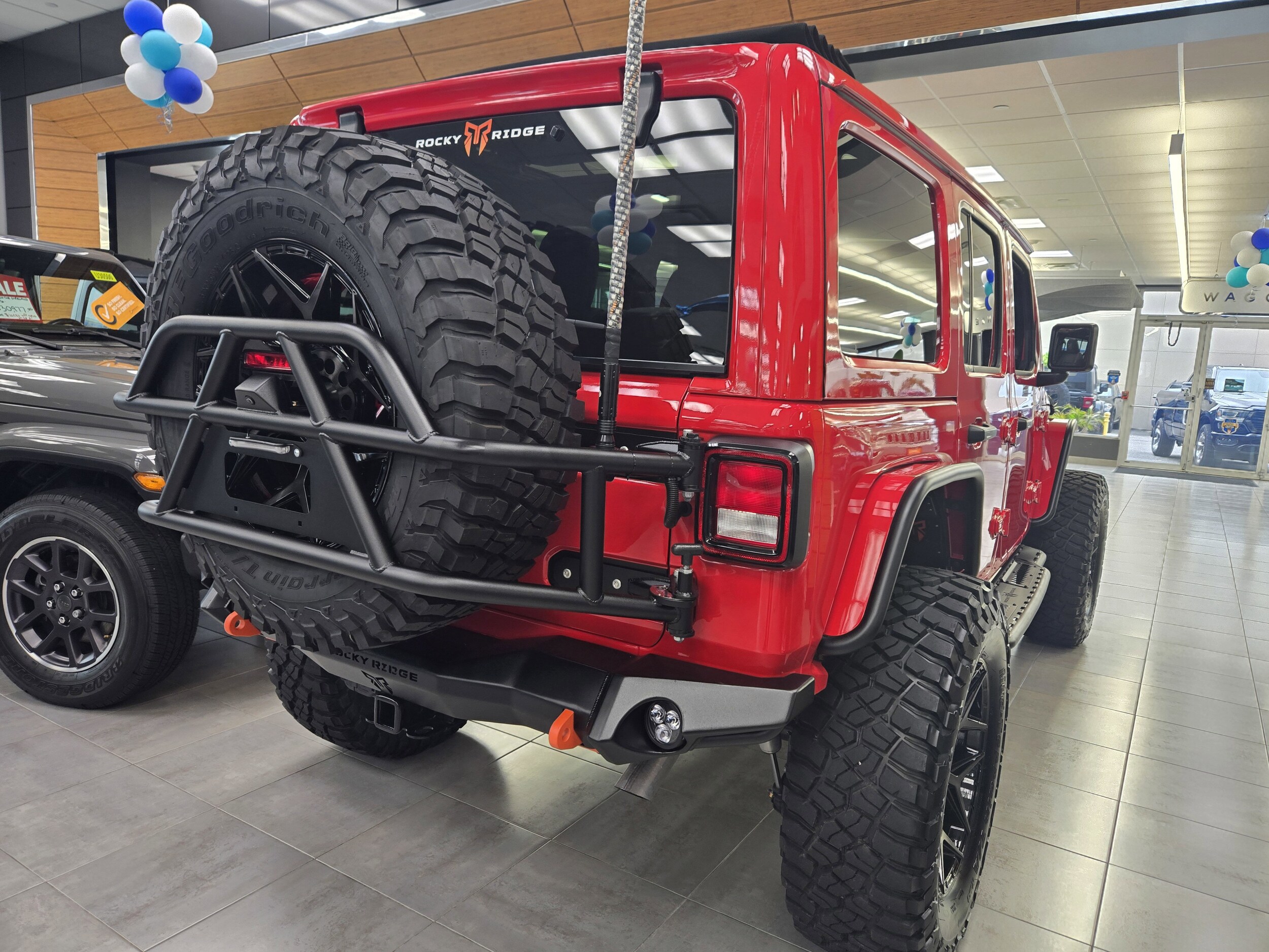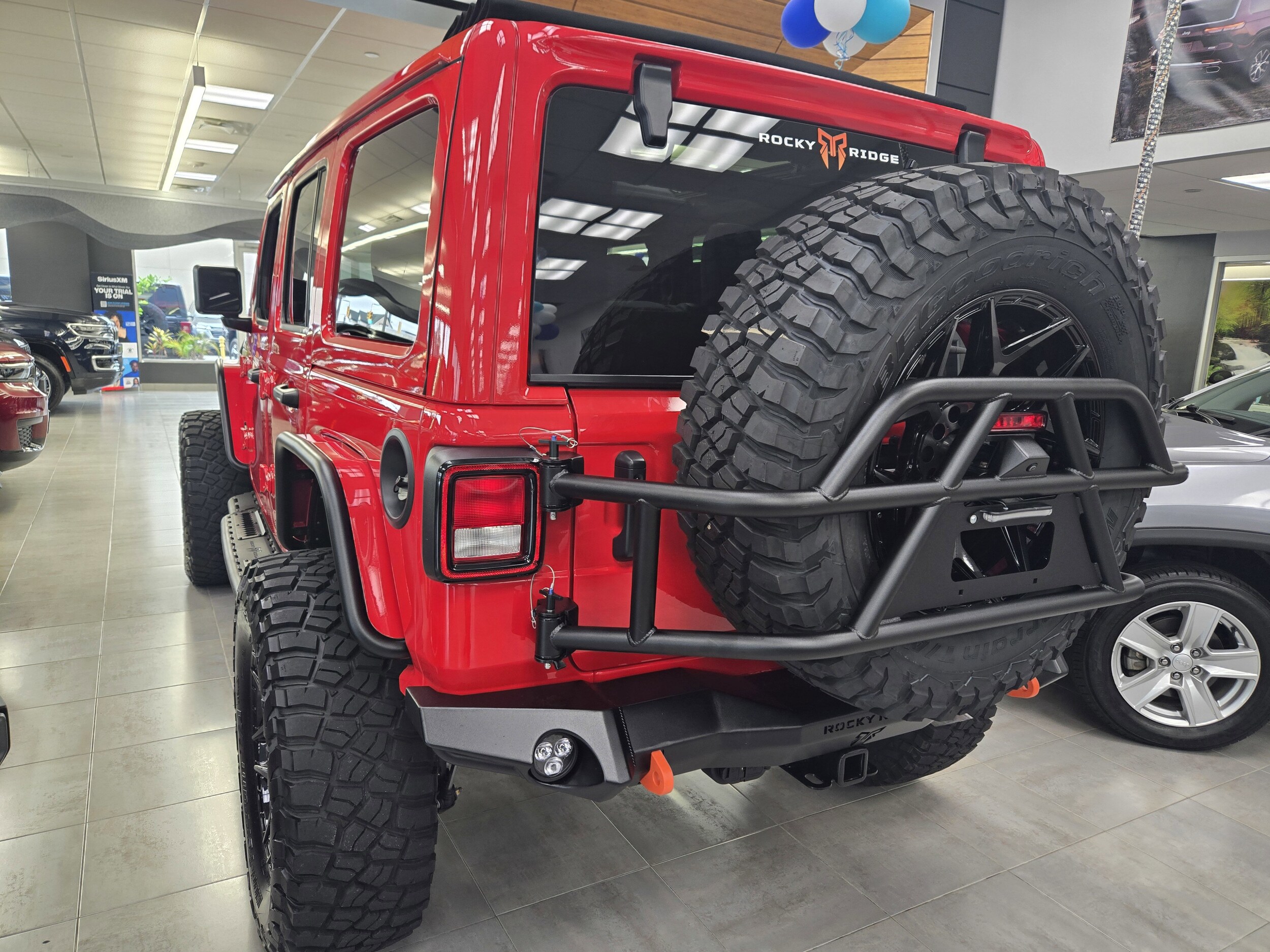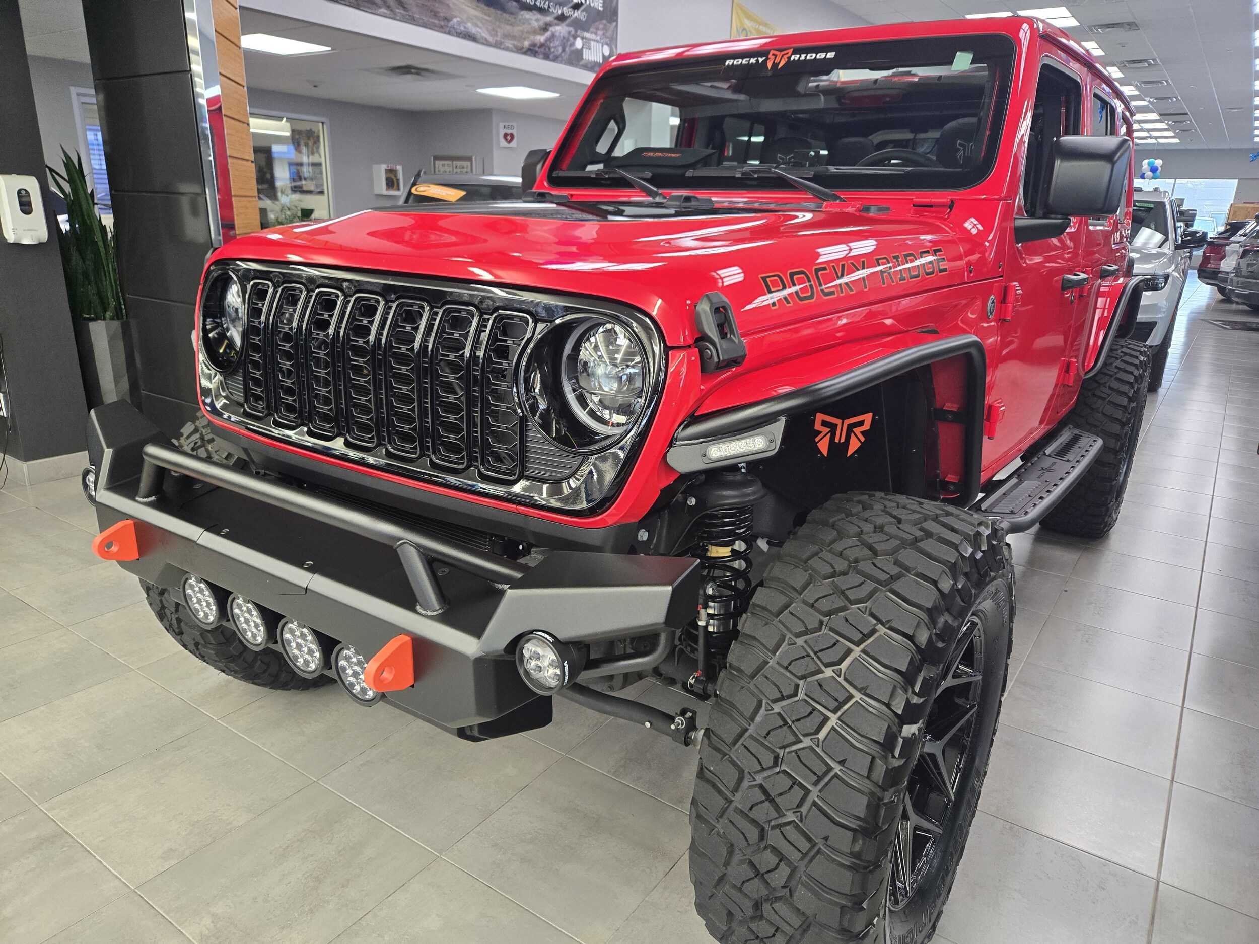 Experience the ultimate lifted Wrangler with this Rocky Ridge custom build, engineered for capability, style, and comfort. Featuring a 3.5" Suspension Lift, FOX 2.0 Performance Series Shocks, 20" Black Off-Road Wheels, and massive 37" Premium Mud Terrain Tires, this Jeep delivers commanding presence on the road and unstoppable performance off it. Premium front and rear bumpers with integrated LED lighting, RGB rock lights, custom graphics, exterior badging, and a swing-out tire carrier complete the aggressive Rocky Ridge look. Inside, enjoy upgraded comfort with leather seating featuring Rocky Ridge custom stitching, heated front seats, heated steering wheel, and the highly sought-after power One-Touch Sky Top, giving you open-air freedom at the push of a button. All-weather mats, custom headrests, and Mopar calibrations round out a build that’s refined, functional, and fully FMVSS compliant. Backed by a 3-year/36,000-mile warranty, this Rocky Ridge Wrangler is ready to turn heads and tackle anything you throw at it.