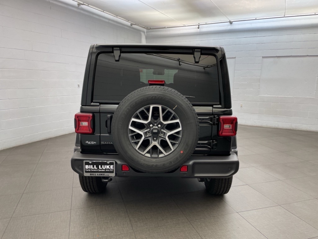 Black Clearcoat 2025 Jeep Wrangler Sahara. Black Clear-Coat. The vehicle features a full-size spare tire mounted on the exterior of the car. The vehicle is in stock at Bill Luke's and prices do not include tax, title, license and $699 doc fee. Offer valid only on vehicles in stock at the time of purchase, and prices expire at midnight on the date displayed. Residency & other restrictions may apply. Second key, floor mats and owner’s manual may not be available on all pre-owned vehicles. We have made every effort to ensure the accuracy of the data that is displayed. Dealer is not responsible for errors, typos or omissions. All inventory is subject to prior sale and all prices are subject to change. Vehicles may vary from stock photos shown.