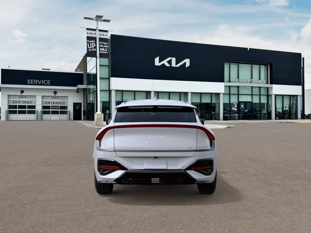 Recent Arrival! Se habla espanol ~ All new Kia's come with 25 miles. The description of the vehicle from the dealer. Glacier White Pearl 2025 Kia EV6 4D Sport Utility GT-Line AWD 1-Speed Automatic Electric Motor106/89 City/Highway MPG. GT-Line SynTex Suede Seat Package (Black Seat Color w/Off-White Accent and SynTex Suede Seat Trim w/Vegan Leather Accents), 14 Speakers, 4-Wheel Disc Brakes, ABS brakes, Air Conditioning, Alloy wheels, AM/FM radio: SiriusXM, Apple CarPlay & Android Auto, Auto High-beam Headlights, Auto-dimming Rear-View mirror, Automatic temperature control, Brake assist, Bumpers: body-color, Carpeted Floor Mats, Delay-off headlights, Driver door bin, Driver vanity mirror, Dual front impact airbags, Dual front side impact airbags, Electronic Stability Control, Emergency communication system, Four wheel independent suspension, Front anti-roll bar, Front Bucket Seats, Front Center Armrest, Front dual zone A/C, Front reading lights, Fully automatic headlights, Garage door transmitter: HomeLink, Heads-Up Display, Heated & Ventilated Front Seats (3-Stage), Heated door mirrors, Heated front seats, Heated rear seats, Heated steering wheel, Illuminated entry, Knee airbag, Low tire pressure warning, Memory seat, Navigation system.