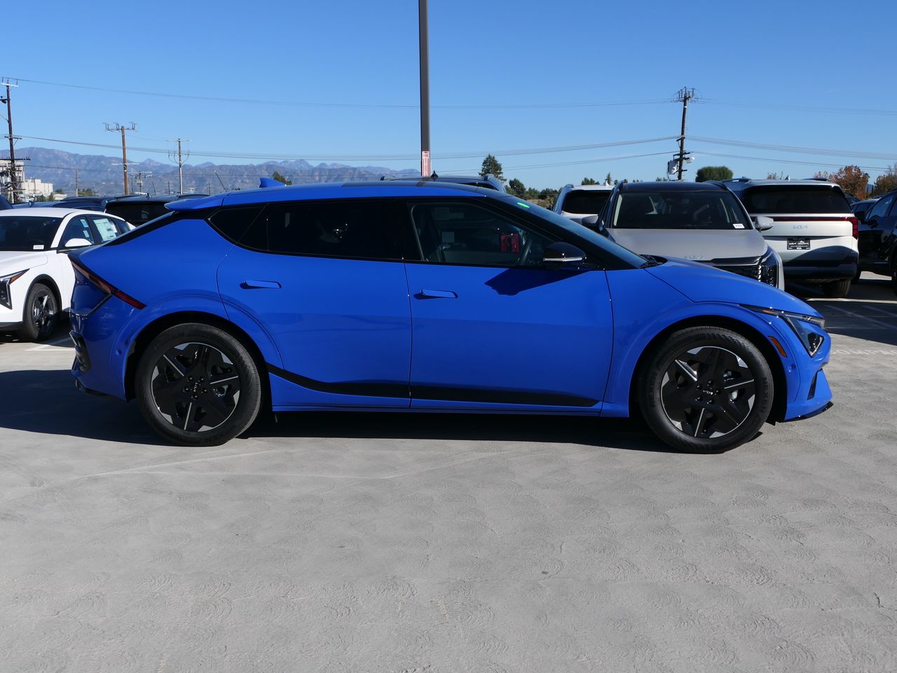 2025 Kia EV6 GT-Line Blue GT-Line RWD 1-Speed Automatic Electric Motor. Net Cost includes a Factory Rebate, if applicable, on this vehicle and is valid on a cash or financed purchase only by an individual for their personal use. The Net Cost does not apply to a lease. Leasing & financing available on approved credit. Trade-ins accepted. Subject to prior sale. All Pricing and Advertised Prices for any/all vehicles offered for sale does not include dealer installed accessories which can be purchased for an additional cost. Images, prices, and options shown, including vehicle color, trim, options, pricing and other specifications are subject to availability, incentive offerings, current pricing and credit worthiness. Images are for illustrative purposes only.