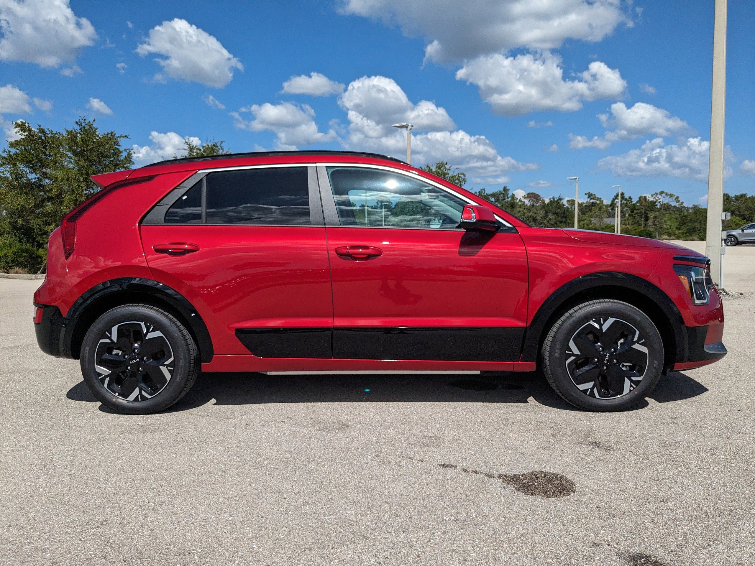 Red 2025 Kia Niro EV Wind FWD 1-Speed Automatic Electric Motor Niro EV Wind, 4D Sport Utility, Electric Motor, 1-Speed Automatic, FWD, Red, Dk Gray Leather, Active Cruise Control, Apple CarPlay & Android Auto, Navigation System, Speed control. Recent Arrival! 126/101 City/Highway MPG