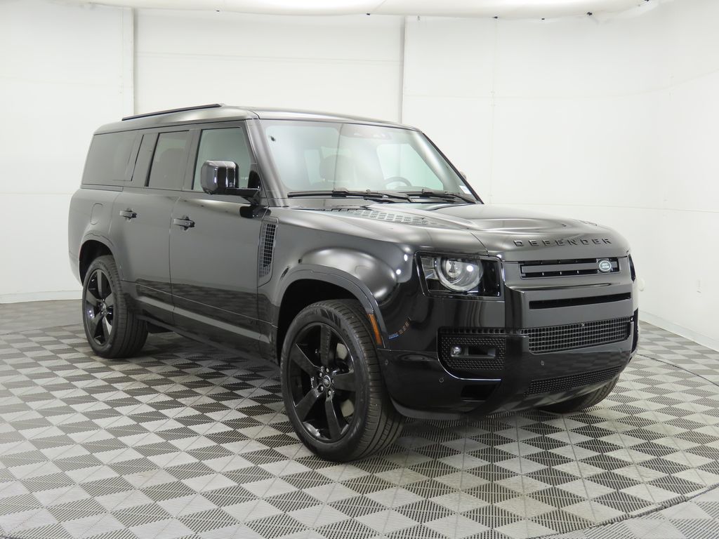 Santorini Black Metallic 2025 Land Rover Defender 130 V8 4WD 8-Speed Automatic V8 Supercharged Defender 130 V8, 4D Sport Utility, V8 Supercharged, 8-Speed Automatic, 4WD, Santorini Black Metallic. Recent Arrival! Factory MSRP of this New 2025 Land Rover Defender 130 V8 is $124,078. Additionally, this vehicle has the following dealer-installed accessories: (1) Nano Ceramic Window Tint at $895, (2) Exterior Protection at $2,697 - specific dealer warranty coverage applicable on these additions, please ask for details. These equal a $127,670 selling price, plus applicable fees. New vehicle pricing includes all offers and incentives. Tax, Title and Tags not included in vehicle prices shown and must be paid by the purchaser. This is easily done by calling us at (855) 559-3222 or by visiting us at the dealership. Vehicle shown is for illustrative purposes actual vehicle image and details may differ. Vehicle may be in transit. For In-Transit inventory any date of arrival is estimated. Dealer reserves the right to change the date due to conditions beyond our control. Please contact dealer for delivery details. MSRP is manufacturer’s suggested retail price for the vehicle. It includes destination/handling charge, optional equipment and port installed options but excludes taxes, title, license, and retailer fees. Dealer Accessories may include added equipment such as window tint, Clear Bra/mask, Diamond Ceramic paint protection or other items. See dealer for details.