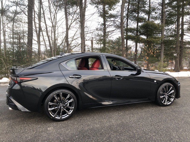 F Sport Package, all wheel drive / 4x4, Apple CarPlay/Android Auto, Bluetooth, back up camera, moonroof / sunroof, NuLuxe synthetic leather, IS 350 F Sport AWD, 4D Sedan, 3.5L V6 DOHC Dual VVT-i 24V, 6-Speed Automatic, AWD, Caviar, Circuit Red NuLuxe & Black Geometric Trim, Adaptive Variable Suspension, all-weather floor mats with all-weather trunk tray, ash interior trim, carbon fiber rear spoiler, drive mode select with Eco/Normal/Sport S/Sport S+ and custom modes, F Sport heated ash wood-trim steering wheel, front fog lights, handling package, heated and ventilated F Sport bolstered seats, heated door mirrors, heated steering wheel, intuitive park assist with rear cross-traffic braking, limited-slip rear differential, moonroof, navigation package with Mark Levinson audio, panoramic view monitor, performance exhaust, power rear sunshade, remote keyless entry, smart access card key, triple-beam LED headlamps, wheels: 19" Split-5-Spoke Alloy with Dark Metallic Finish. 350 F Sport AWD 6-Speed Automatic 3.5L V6 DOHC Dual VVT-i 24V Caviar 19/26 City/Highway MPG.