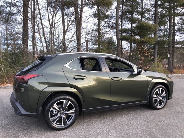 Premium Package, all wheel drive / 4x4, Apple CarPlay/Android Auto, Bluetooth, back up camera, moonroof / sunroof, Nuluxe synthetic leather, UX 300h Premium AWD, 4D Sport Utility, 2.0L I4 DOHC 16V, eCVT, AWD, Nori Green Pearl, Accessory Package (Z2), Black Emblem Overlays, Cargo Mat, Cold Area Package, Digital Key, Heads-Up Display, Heated & Ventilated Front Bucket Seats, Heated door mirrors, Key Gloves, Lexus Premium Sound System, Mudguards, Power Liftgate, Power moonroof, Premium Package, Rear Bumper Applique, Remote keyless entry, Wheel Locks, Wheels: 18" x 7" 5-Spoke Dark Gray Metallic, Wireless Charger. 300h Premium AWD AWD eCVT 2.0L I4 DOHC 16V Nori Green Pearl 44/40 City/Highway MPG.
