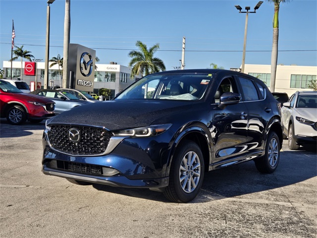This vehicle is located at Grieco Mazda of Delray Beach! 2025 Mazda CX-5 2.5 S Select Package Deep Crystal Blue Mica 23/29 City/Highway MPG This vehicle is located at Grieco Mazda of Delray Beach! $3,138 off MSRP! Priced below KBB Fair Purchase Price! All pricing and details provided are believed to be accurate, but we do not warrant or guarantee such accuracy. New vehicles offered may be eligible for manufacturer incentives which may change at any time and are subject to incentive qualification criteria and requirements, and which may be contingent upon manufacturer finance company approval. Manufacturer incentive data and vehicle features information is provided by third parties and believed to be accurate as of the time of publication. Vehicle information is based upon standard equipment and may vary from vehicle to vehicle. Please contact the dealership for complete vehicle information. to correct error or omissions. Prices and payments do not include sales tax or other taxes, tag, title, registration fees, government fees and tag agency fees are not included in the quoted price. Electronic Registration Filing fee of $549, Pre-delivery Service Fee of $1295 and 2 year LoJack activation are not included in the quoted price. While great effort is made to ensure the accuracy of the information on our website, errors do occur. Further, vehicle listings within this website may not reflect all accurate vehicle items. Accessories and colors may vary. Vehicle Photos may not match exact vehicles. Please confirm information and vehicle price and availability of incentives by calling or visiting us at the dealership.