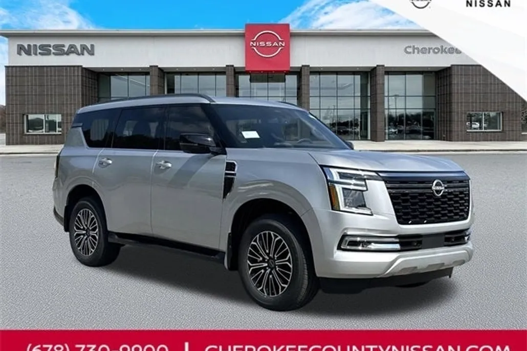 Brilliant Silver Metallic 2025 Nissan Armada SL 4WD 9-Speed Automatic 3.5L DOHC. We are one of the leading Nissan dealers for selling the new 2025 Nissan Armada Holly Springs. Our customers come to our Nissan dealership showroom located in Holly Springs, Canton, Kennesaw, and Marietta, GA. Holly Springs, GA customers like our great pricing. Canton, customers appreciate our fantastic service. Holly Springs, GA customers know they will have a great shopping experience. Kennesaw, GA customers love our friendly employees. Marietta, GA customers know that we are one of the leading Nissan dealerships in the Holly Springs, GA area and serve the Holly Springs market. Whether you are from Holly Springs, Canton, Kennesaw, and Marietta, GA, we hope you will give us a chance to show why Cherokee County Nissan Nissan of Holly Springs, Georgia is the one of the best Nissan dealers selling and servicing 2025 Nissan Armada 4D Sport Utility SL in the Holly Springs, area.