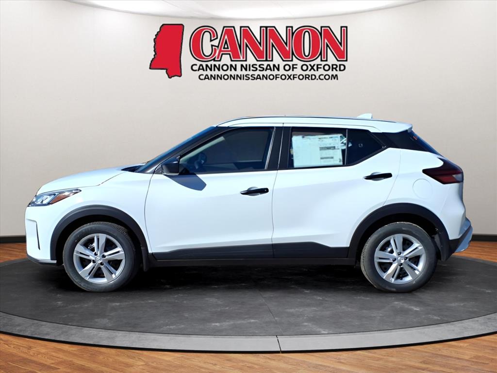 Fresh Powder 2025 Nissan Kicks Play S FWD CVT 1.6L 4-Cylinder DOHC 16V. 31/36 City/Highway MPG.